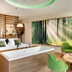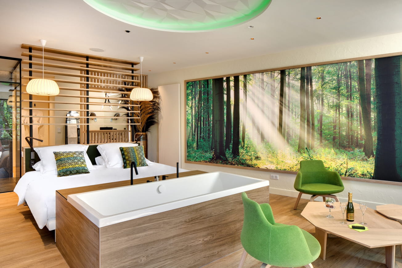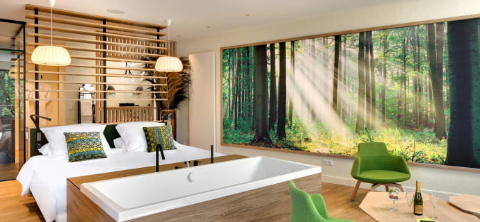 Neben der Raffinesse Ihres Zimmers und den kulinarischen Köstlichkeiten, die Sie erwarten, öffnet Ihnen La Cheneaudière die Türen zu seinem Wellnessbereich, einem wahren Tempel, der der Erholung gewidmet ist. Sie können in eines der 4 Schwimmbäder eintauchen oder sich in einer der 5 Saunen entspannen, die am Anreisetag ab 15:30 Uhr und am Abreisetag bis 11:00 Uhr zur Verfügung stehen. Das Hammam-Tepidarium, das Nordische Bad, die Erlebnisduschen, die Sprudelstrände und die hängenden Ruhenester vervollständigen dieses Wohlfühlpanorama.