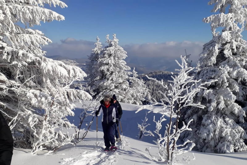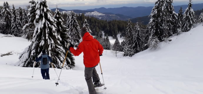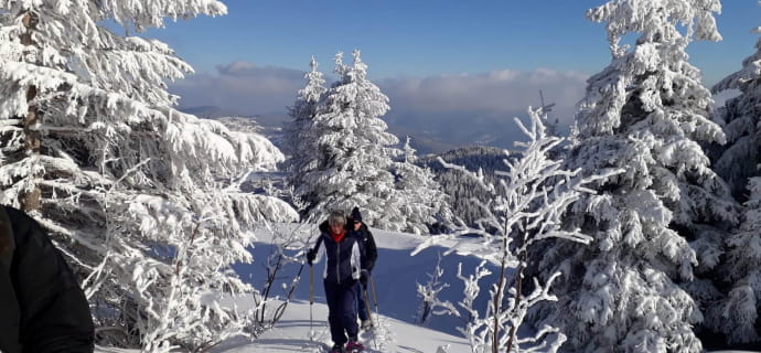 Erkunden Sie die zauberhafte Landschaft der Hochvogesen bei einer immersiven Wanderaktivität! Wenn Schnee liegt, kann diese Wanderung in eine Schneeschuhtour umgewandelt werden, was dem Ganzen einen Hauch von Winterzauber verleiht.