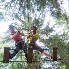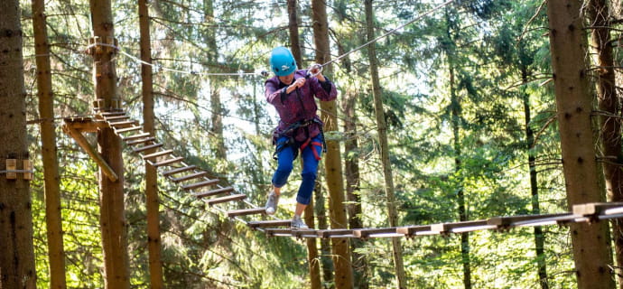 In La Bresse bietet Ihnen Bol d'Air zahlreiche Outdoor-Aktivitäten, um pure Momente der Flucht zu erleben. Abenteuerpark, Barfußpfade und Big Air Jump. Der Bois des Lutins, ein Spielplatz zwischen Himmel und Erde in einem verzauberten Wald, den die ganze Familie von 2 bis 102 Jahren gemeinsam nutzen kann. Bei den Explor Games® stellen Sie sich in Teams von 2 bis 5 Spielern körperlichen und geistigen Herausforderungen, Geschicklichkeits- und Orientierungsübungen, um zwei Stunden lang in der Natur und in Themenräumen zu spielen. Für noch mehr Nervenkitzel bietet Ihnen Bol d'Air auch das Fantasticable, einen Flug wie ein Vogel mit über 110 km/h entlang eines 1 km350 langen Kabels, den Sie allein oder zu zweit erleben können. Den Fantasti'Kid, die 200 m lange, liegende oder sitzende Seilrutsche für Kinder von 15 bis 35 kg. Oder die Bol d'Air Line, die in Frankreich einzigartige kurvenreiche Seilrutsche für einen neuartigen Slalom durch den Wald. Die Wagemutigsten können sich am Bungee-Sprung versuchen oder am Propuls'Air, dem höchsten Überkopf-Gummiband Frankreichs. Und um die Vogesen aus der Vogelperspektive zu entdecken, bietet Bol d'Air auch eine professionelle Gleitschirmschule, die Tandem-Schnupperflüge über die Vogesen anbietet. Bol d'Air bietet auch Unterkünfte in Zimmern, Chalets und Ferienwohnungen, insbesondere die Ferme de ma Grand-Mère, eine mit 4 Ähren ausgezeichnete Unterkunft mit Sauna und Whirlpool im Freien, sowie ungewöhnliche Unterkünfte. La Clairière aux Cabanes, ein kleines Hüttendorf mit fünfzehn verschiedenen Stimmungen und Geschichten. Sommer wie Winter, allein, zu zweit, mit der Familie oder in der Gruppe: Wagen Sie mit Bol d'Air eine Flucht in die Natur.