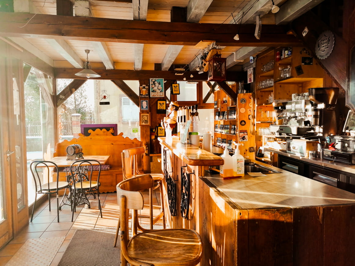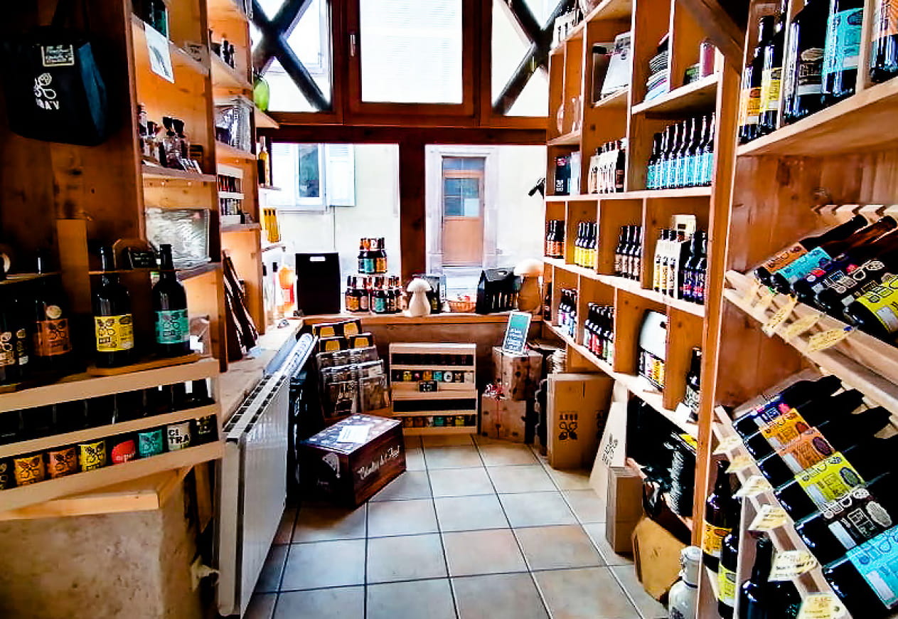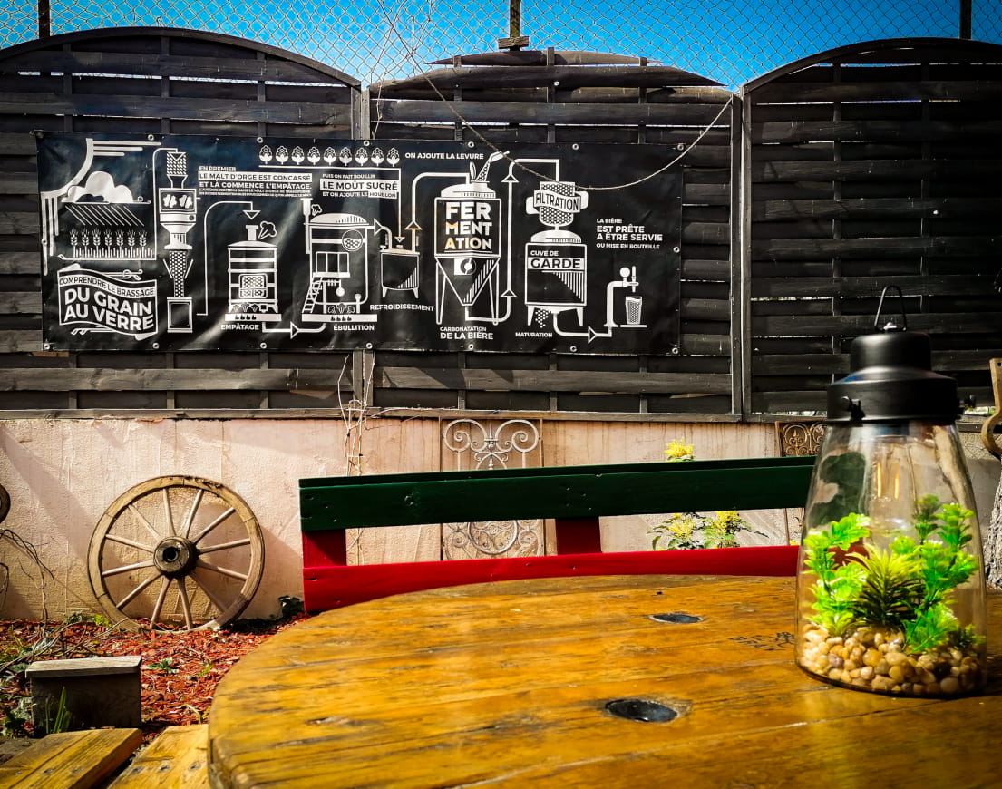 Unsere Brauerei bietet auch einen Restaurantbereich im Freien sowie einen Laden, alles in einem geselligen, typisch elsässischen Rahmen!