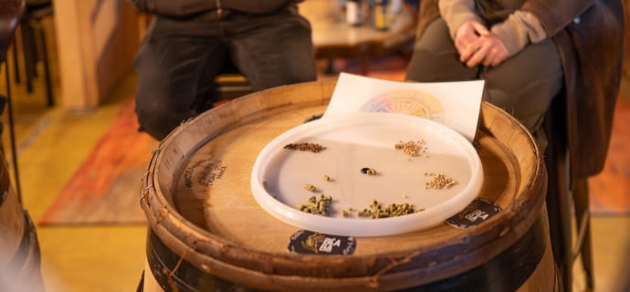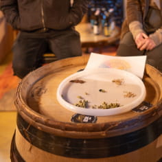 Der Workshop wird durch eine kommentierte Verkostung von zwei handwerklich gebrauten Bieren unterbrochen, die ausgewählt wurden, um verschiedene Arten und Techniken zu veranschaulichen. Die ideale Gelegenheit, um zu verstehen, welchen Einfluss jede Wahl beim Brauen auf die Aromen und die Textur im Mund hat.