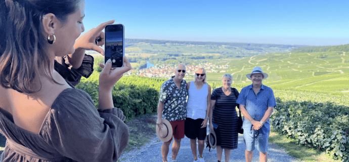 Erleben Sie mit Ay Champagne Experience ein unvergessliches Erlebnis und entdecken Sie die berühmtesten Dörfer und Weinberge der Champagne. Entdecken Sie privat oder in kleinen Gruppen in unseren elektrischen E-Meharis, Mini-Vans oder Mercedes-Vans das außergewöhnliche Terroir der Champagne und ihre unabhängigen Champagnerproduzenten in der Nähe von Reims und Epernay in Begleitung unserer passionierten Reiseleiter/Fahrer. Entdecken Sie die berühmtesten Dörfer und Weinberge der Côte des Blancs, der Montagne de Reims sowie die zum UNESCO-Weltkulturerbe gehörenden historischen Weinhänge der Champagne im Marne-Tal bei Epernay. Besuchen Sie die Weinpressen, Kellereien und Weinkeller der unabhängigen Winzer/Produzenten der Champagne, die wir für Sie ausgewählt haben, und erfahren Sie mehr über den Herstellungsprozess der Champagne. Genießen Sie die Verkostung zahlreicher Champagner mit Tipps zur Verkostung. Halten Sie inmitten der Weinberge an, um außergewöhnliche Panoramen zu bewundern, in denen Sie unvergessliche Fotos machen können. Bis bald in der Champagne!