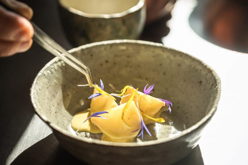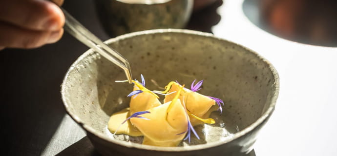 - Die Entdeckung eines Angebots, das einen Spaziergang auf 6 Pfaden nach der Inspiration des Küchenchefs umfasst, der mit saisonalen, frischen und täglich geernteten Produkten aus der Region gestaltet wird.
