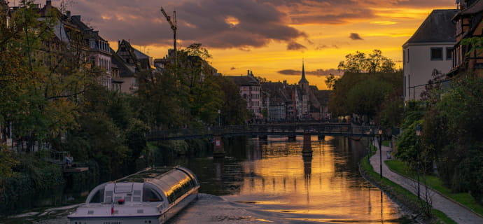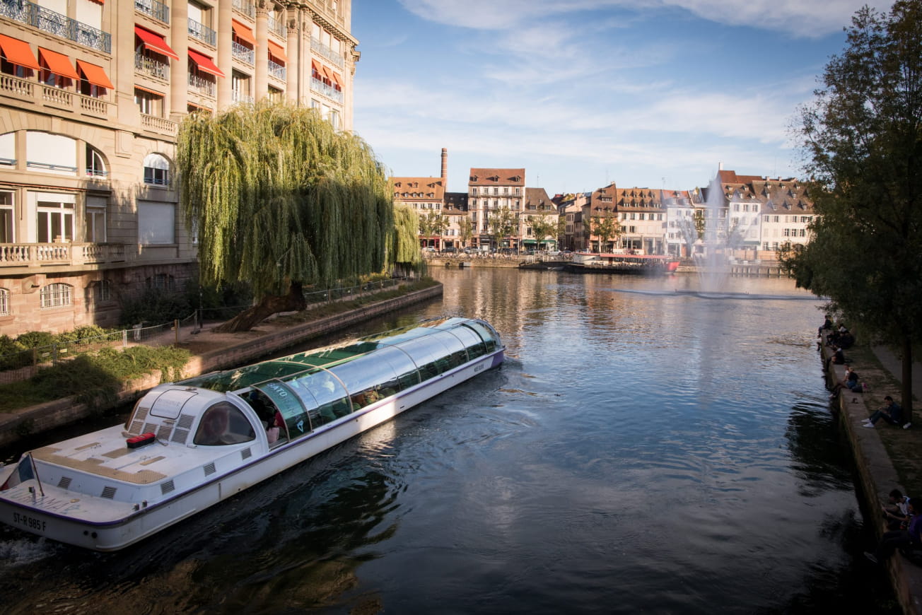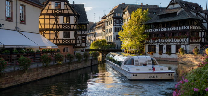 Eine Bootstour durch Straßburg ist eine hervorragende Möglichkeit, die Stadt auf sehr bequeme Weise zu erkunden: Sie nehmen sich inmitten eines Grünkorridors Zeit und entdecken die ganz besondere Geschichte einer Stadt, in der viele Nationen aufeinandertreffen. Während der Fahrt auf dem Wasser tauchen Sie schnell in die Atmosphäre Straßburgs ein, in einer 360°-Kulisse und einer Landschaft voller Überraschungen.