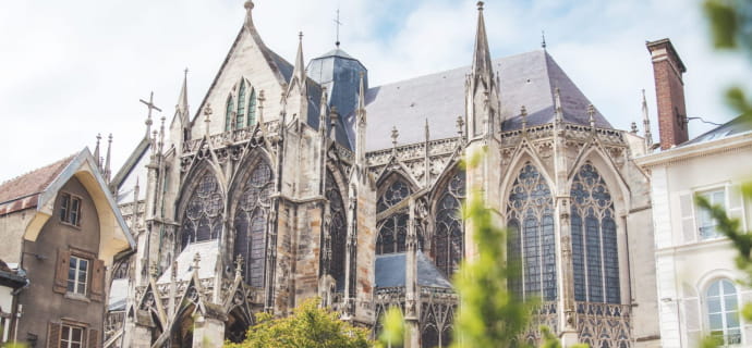Wenn Sie die Türen der Basilika Saint-Urbain aufstoßen, werden Sie auch von der Eleganz und der Helligkeit der Räumlichkeiten ergriffen sein, die durch eine Sammlung erstaunlicher Glasmalereien sublimiert werden. Insbesondere das Querschiff und der Chor haben ihre ursprünglichen Glasfenster aus den 1270er Jahren bewahrt. Auch das Tympanon des Jüngsten Gerichts wird mit seinen bunten Glasmalereien Ihre Aufmerksamkeit auf sich ziehen. Begeben Sie sich auf eine wahre Kunst- und Kulturreise durch die Geschichte von Troyes!