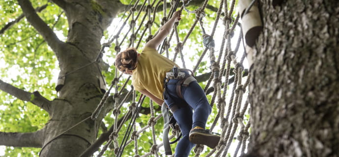 Bei Ihrer Ankunft stattet Sie ein Betreuer aus und erinnert Sie an die Sicherheitsvorschriften. Dann heißt es: Bühne frei für das Abenteuer! Der Park bietet eine große Vielfalt an Luftstrecken, die für alle Niveaus geeignet sind, mit einem durchgehenden Lebensliniensystem für optimale Sicherheit. Kinder ab 3 Jahren, Jugendliche oder Erwachsene auf der Suche nach dem Nervenkitzel – hier findet jeder seine Herausforderung: