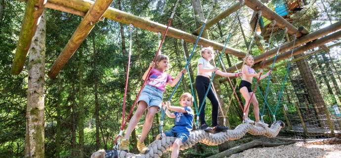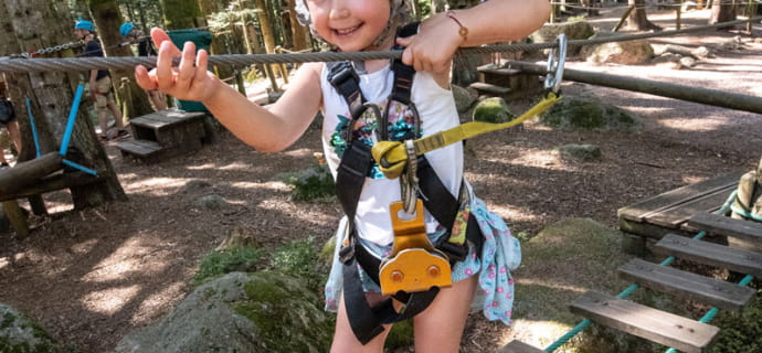Eine breite Palette an Aktivitäten mit Nervenkitzel steht auf dem Programm. Für die 15- bis 35-kg-Kinder gibt es die Möglichkeit, mit dem Fantasti’Kid wie ein Vogel durch die Luft zu fliegen oder die Wälder zu erkunden, indem Sie sich auf eine Entdeckungsreise in die Welt der Bois de Lutins begeben. Eine ungewöhnliche Erfahrung, bei der Netze und Hütten über einer Palette von Spielen wie Trampolinen, Rutschen usw. thronen. Im Abenteuerpark können die Kinder verschiedene Parcours in den Bäumen, auf Barfußpfaden oder im Big Air Jump erkunden.
