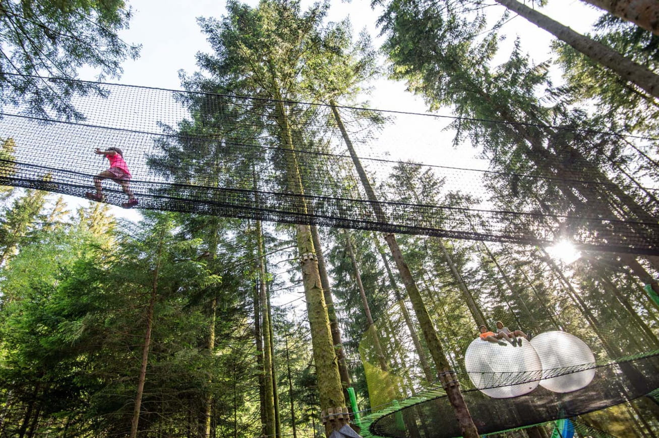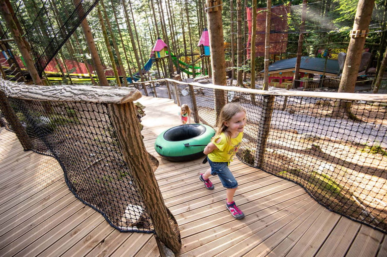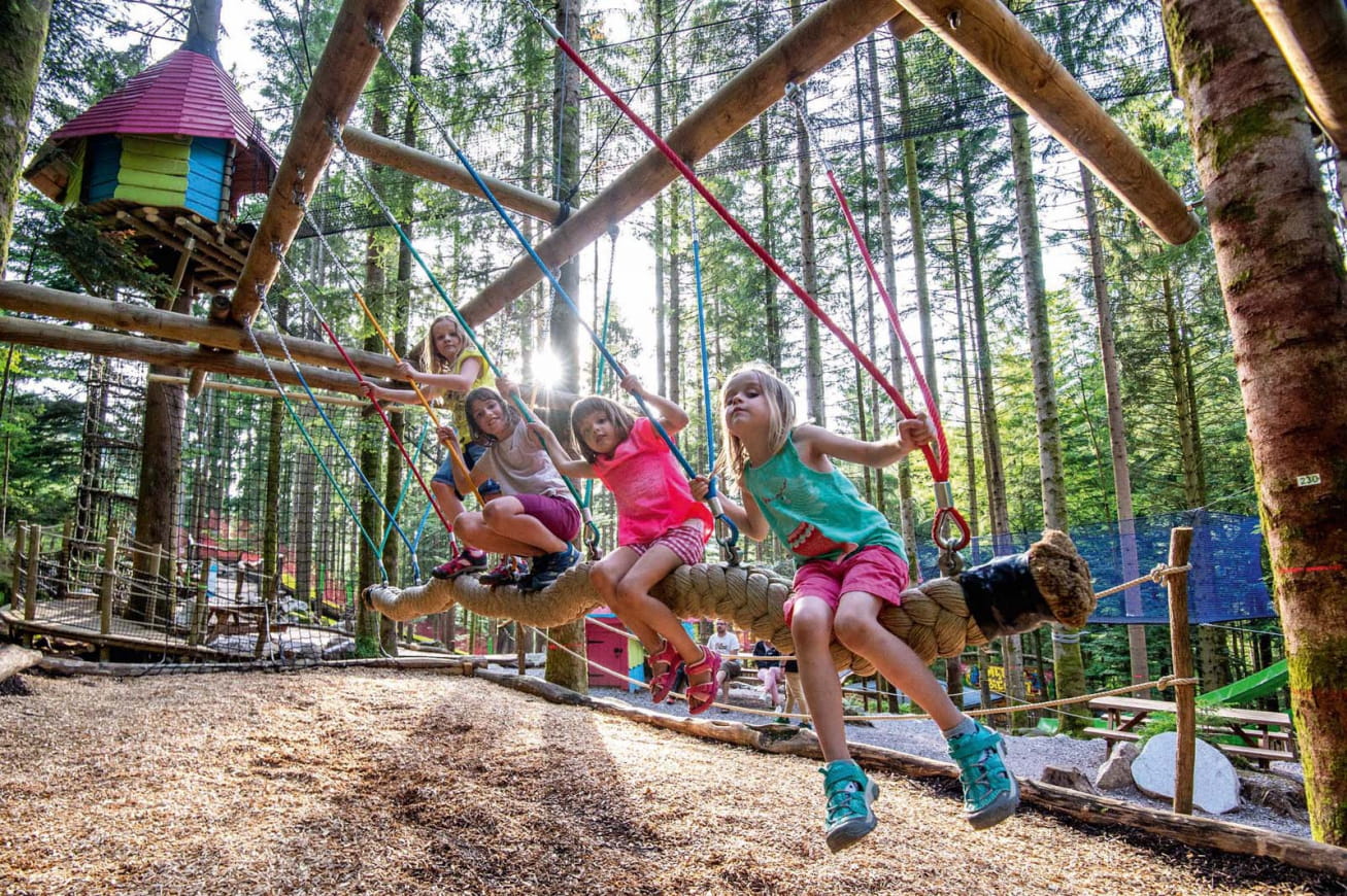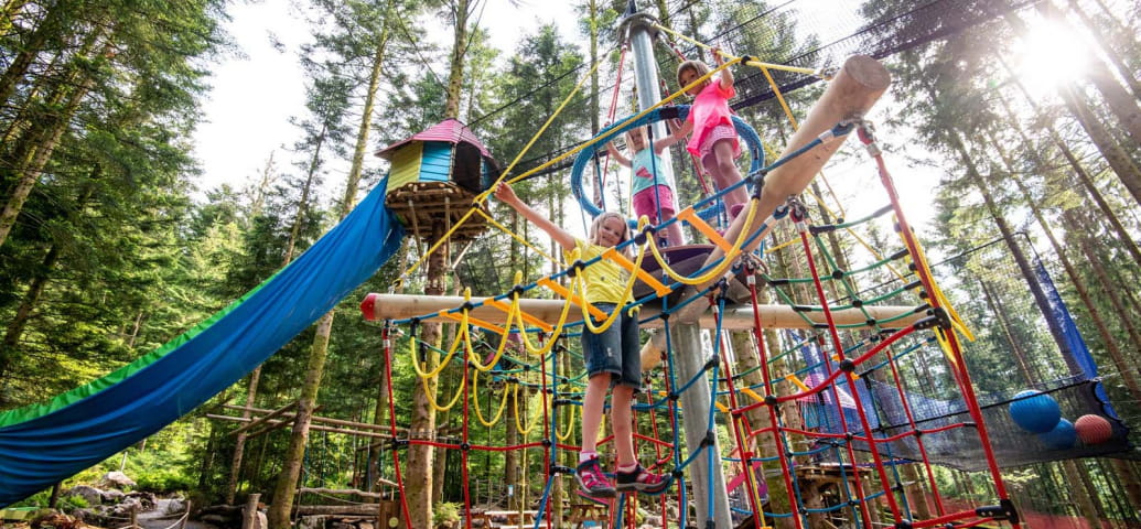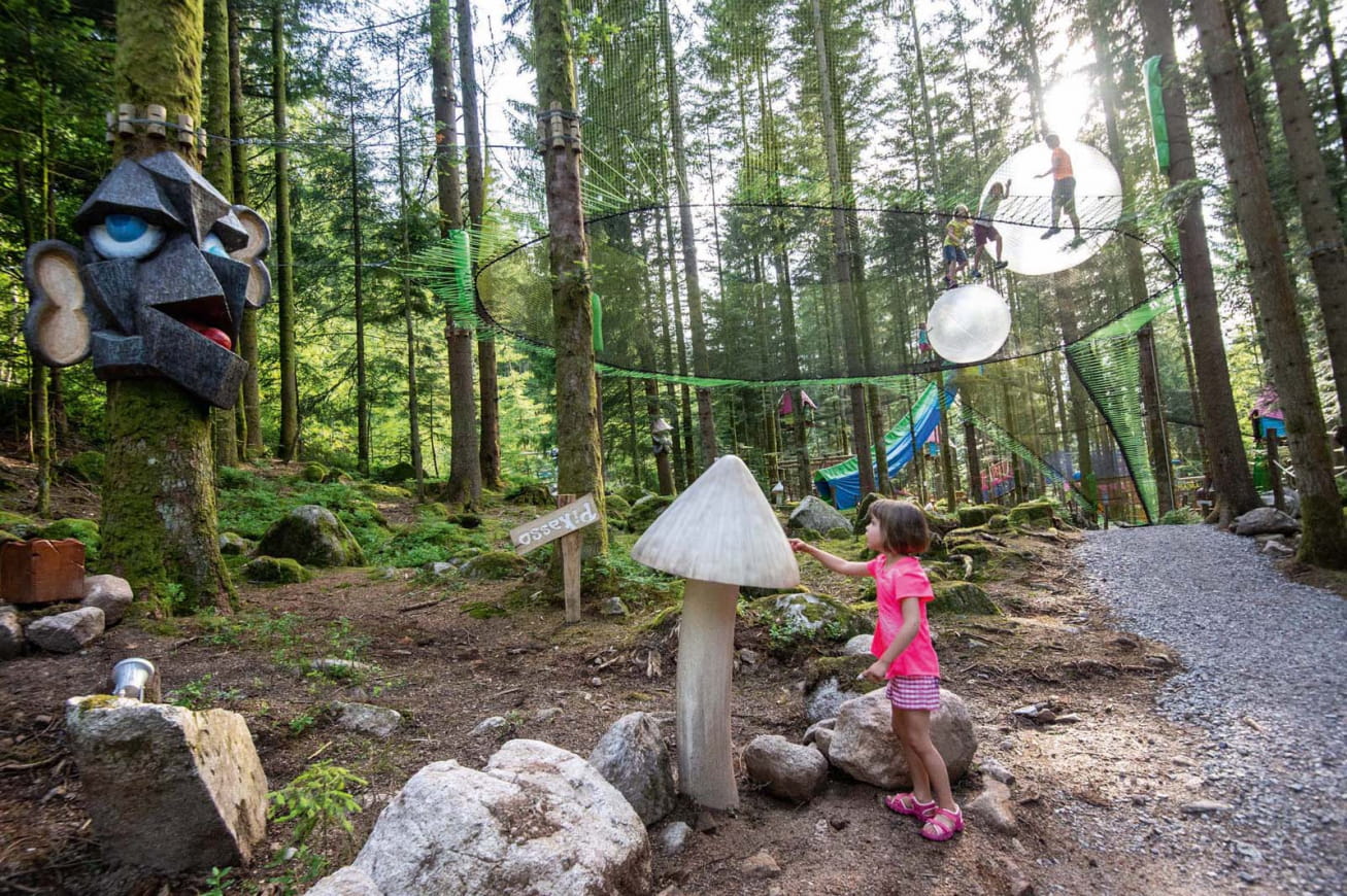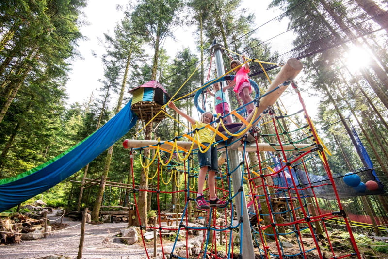 Erkunden Sie das geheimnisvolle unterirdische Dorf, folgen Sie der Bojenbahn, klettern Sie im Haus der Spinne, fahren Sie den Koboldschlitten hinunter, gleiten Sie auf den Seilrutschen der Feen, überqueren Sie den fantastischen Steg ... Der Parcours hält viele Überraschungen für Sie bereit!