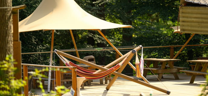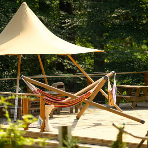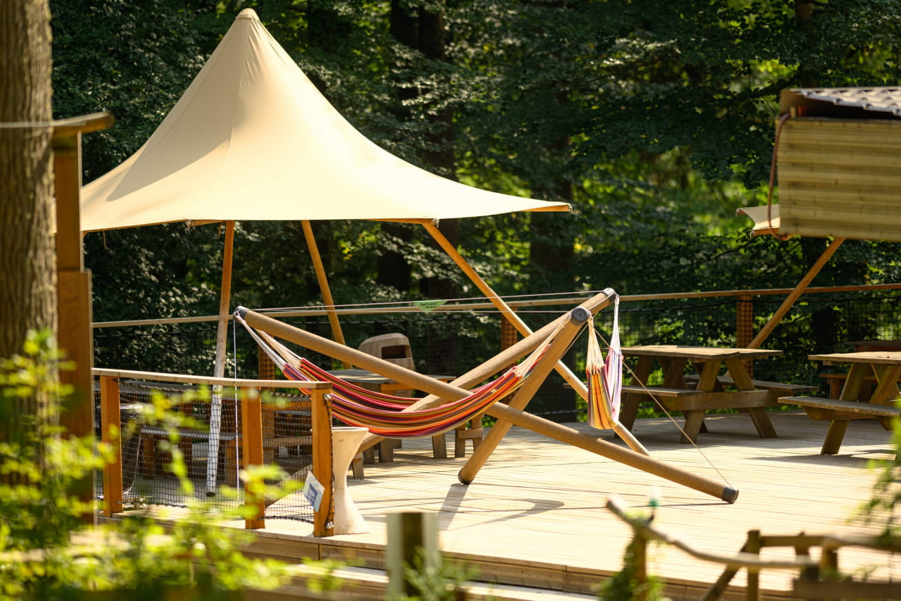 Um das Vergnügen zu verlängern, haben Sie die Möglichkeit, ein vom Park angebotenes Gruppenessen zu bestellen oder sich für einen Abenteueraufenthalt in Holztipis zu entscheiden. Sie können auch Ihr eigenes Picknick mitbringen, vorausgesetzt, Sie bringen Ihre eigenen Müllsäcke mit.