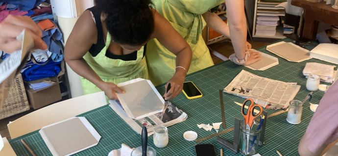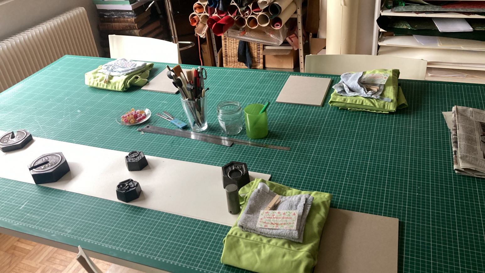Die erste Etappe des Workshops ist der Entdeckung der Buchbinderei mit Anne gewidmet, die Sie bei der Herstellung eines Leporello-Notizbuchs begleiten wird. Mithilfe hochwertiger Materialien wie einem 300g schweren Chiffonpapier, das sich ideal für Aquarelle eignet, sowie Leinwand und verschiedenen Papieren für den Einband entwerfen Sie ein individuelles Notizbuch. So entdecken Sie die Freude an der Arbeit mit Papier und die Sorgfalt des Buchbindens.