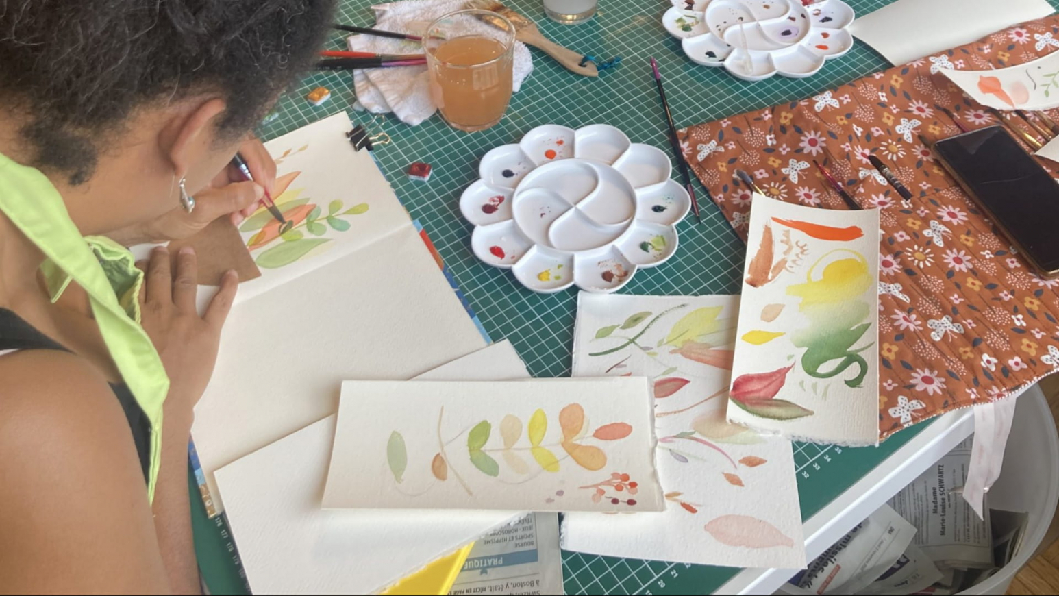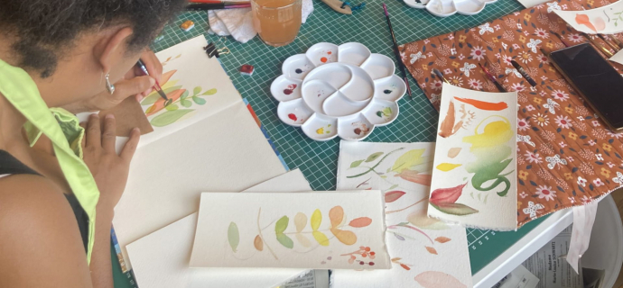 Der Workshop wird mit Isabelle fortgesetzt, die Sie in die Grundlagen der Aquarellmalerei einführt. Anhand einfacher Übungen werden Sie eine Illustration in Aquarell und Mixed Media erstellen. Dies ist eine Gelegenheit, Ihre Kreativität zu erkunden und gleichzeitig die wichtigsten Techniken zu erlernen, um diese heikle Kunst zu beherrschen.