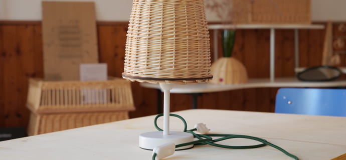 Das Abenteuer endet hier nicht! Sie gehen mit einem Lampenschirm aus Weidenruten nach Hause, der Ihre Kreativität und Ihr neu erworbenes Know-how zum Ausdruck bringt. Dieses einzigartige Objekt wird Ihrer Dekoration einen Hauch von Authentizität und Raffinesse verleihen. Wenn Sie möchten, können Sie in Lucies Atelier einen Lampenfuß für 40 € kaufen, obwohl der Lampenschirm auch auf jeden anderen Lampenfuß, den Sie bereits besitzen, montiert werden kann.