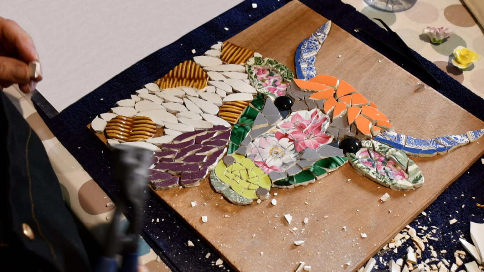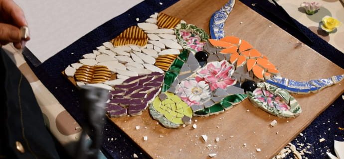 Lernen Sie die Kunst des Geschirrmosaiks kennen und nehmen Sie Ihre eigene Kreation mit nach Hause.
