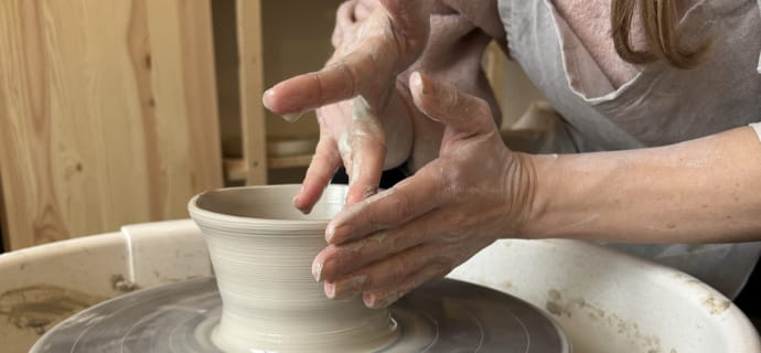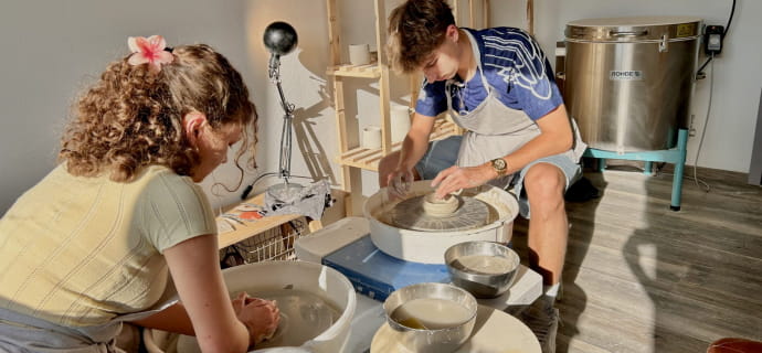 Sie können allein oder zu zweit einen Privatkurs besuchen, um die Grundlagen des Drehens zu erlernen und Ihr eigenes Keramikstück zu formen. Sie werden von Charlotte Schritt für Schritt begleitet, um diese Technik zu beherrschen. Und wenn Sie nach dieser Einführung Lust auf mehr bekommen haben, können Sie zu einem zweiten Workshop wiederkommen, bei dem Sie Ihre Kreation dekorieren und nach Ihren Wünschen gestalten können!