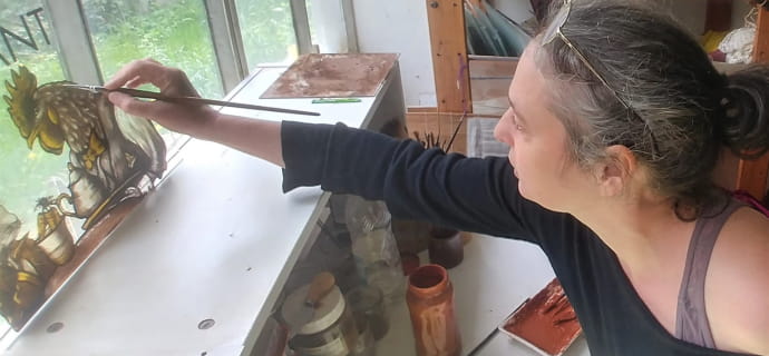 Sie können nach Belieben ein Glasfenster gestalten, das einen Vogel, Blumen oder sogar einen Kaktus darstellt: Jedes Stück, das Sie herstellen, wird Ihre Kreativität und Ihre Lernerfolge in diesem Workshop widerspiegeln. Annes Spezialität sind die Rondelle, bei denen Sie spezielle Techniken der Glasmalerei in Grisaille und Silbergelb kennen lernen und eine einzigartige Perspektive auf diese traditionelle Kunst erhalten.