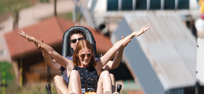 Das Ticket gilt für 1 Abfahrt und man kann die Abfahrt alleine oder zu zweit machen. Das Abenteuer ist ab 3 Jahren zugänglich, vorausgesetzt, Sie werden von einem Fahrer im Alter von über 8 Jahren begleitet. Denken Sie daran, dass Sie während dieser aufregenden Abfahrt die Kontrolle haben. Beachten Sie also die Beschilderung, um eine sensationelle Fahrt in aller Sicherheit zu gewährleisten.