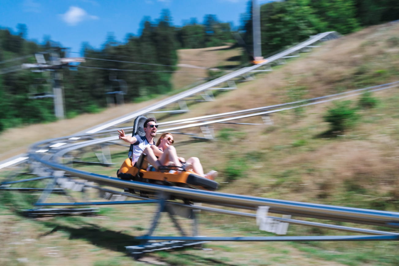 Begeben Sie sich auf ein aufregendes Abenteuer und entdecken Sie den Nervenkitzel des Rodelns auf Schienen in La Bresse-Hohneck! Im Sommer wie im Winter verspricht der Schlitte Mountain schwindelerregende Abfahrten für Groß und Klein. Ein unvergessliches Erlebnis wartet auf Sie!