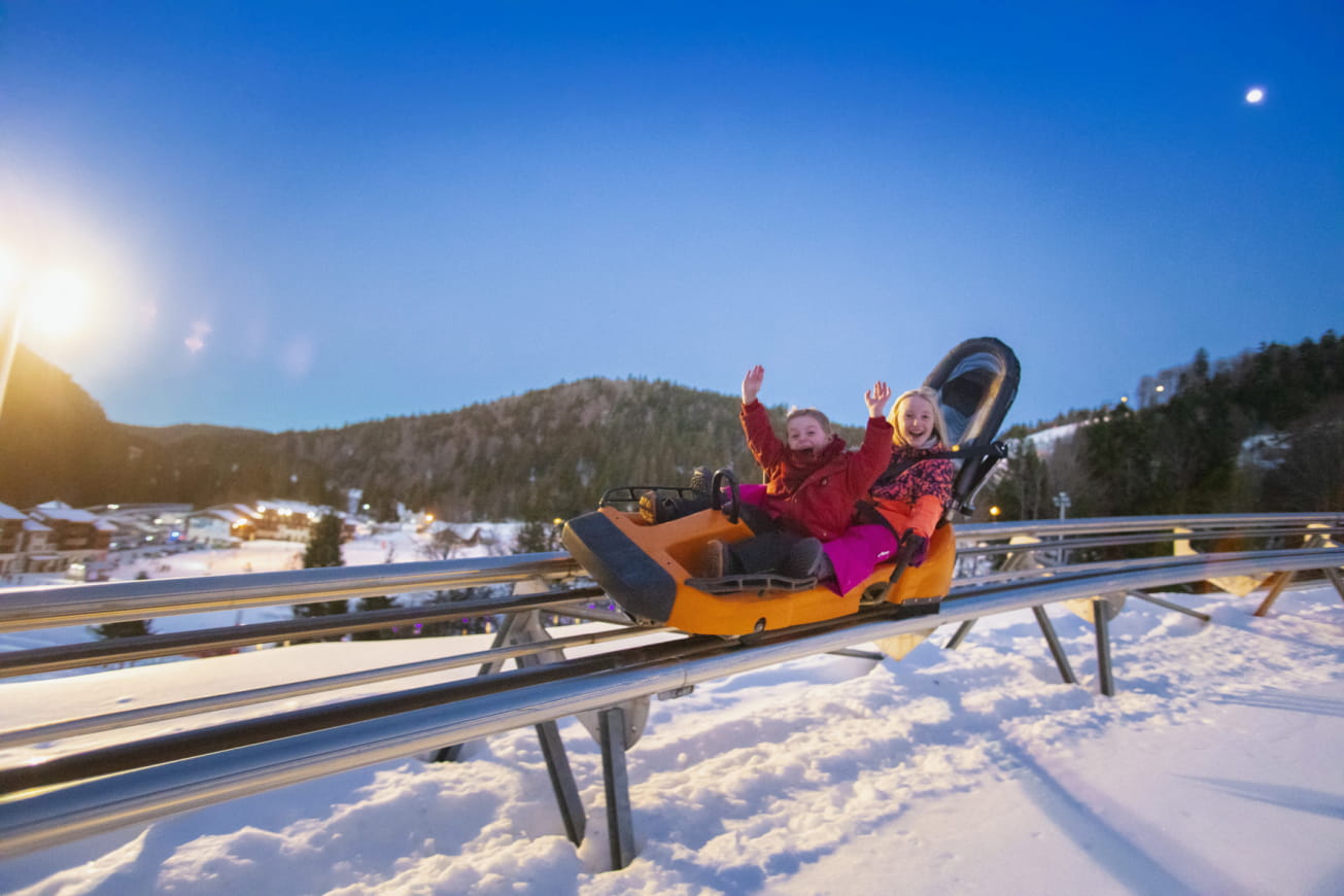 Mit einer 900 m langen Schleife, scharfen Kurven, fesselnden Wellen und einer beeindruckenden 340°-Schraube hält der Schlitte Mountain ein Maximum an Adrenalin für Sie bereit! Aber keine Sorge, wenn Sie eine sanftere Abfahrt bevorzugen, können Sie Ihr Tempo jederzeit kontrollieren. Jeder Schlitten ist mit Sicherheitsgurten, einer Kopfstütze für den hinteren Passagier und einem bordeigenen Bremssystem ausgestattet, das sich bei der Ankunft automatisch einschaltet.