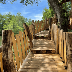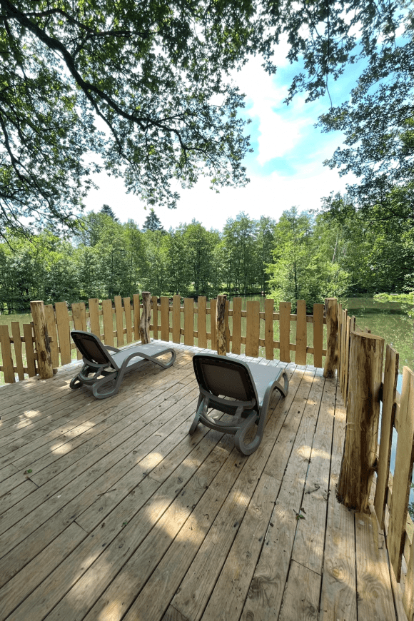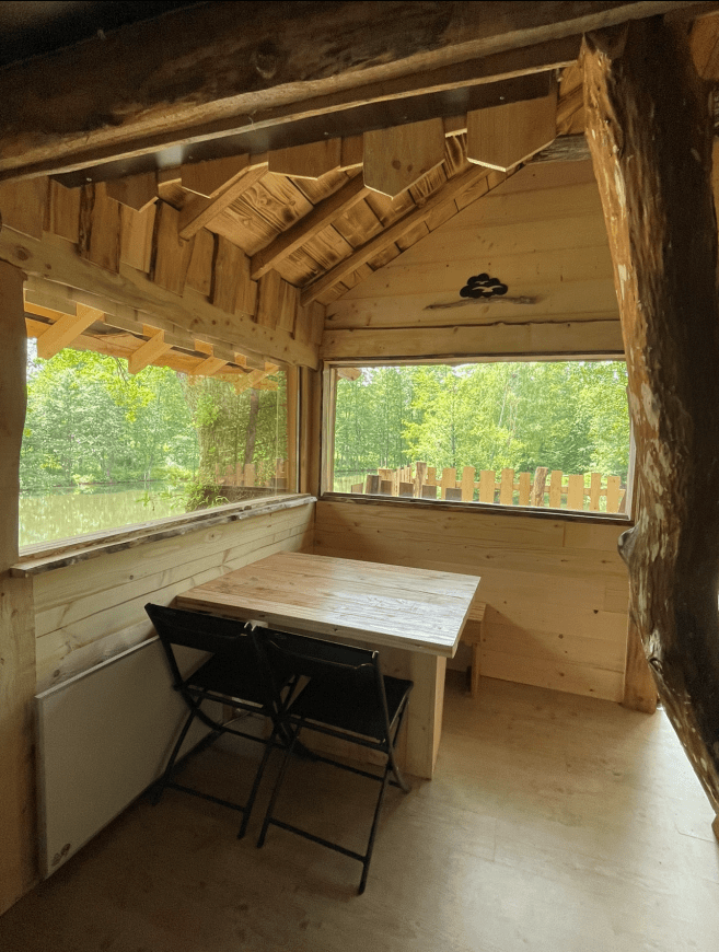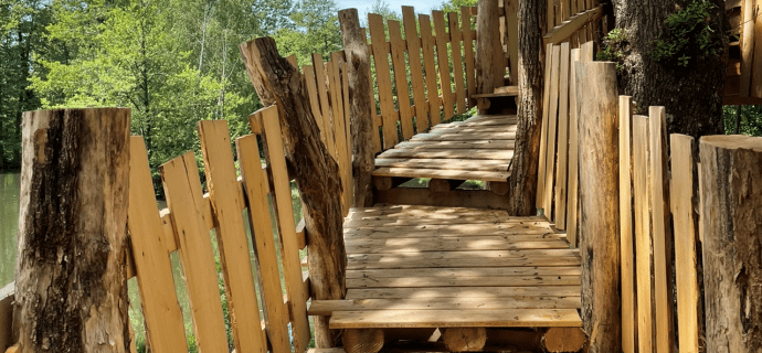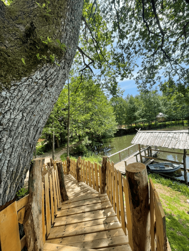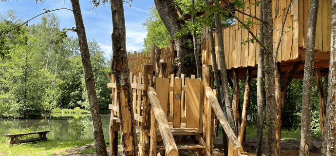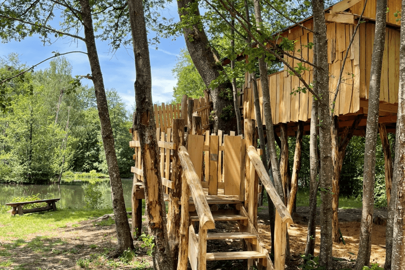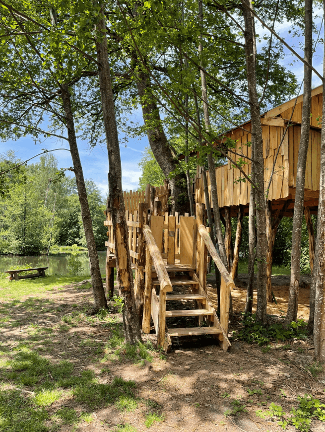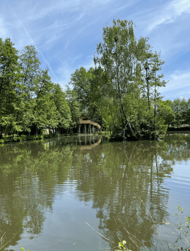 Das Baumhaus ist wunderbar inmitten eines üppigen Waldes gelegen. Von Ihrer Terrasse aus, die dem Teich zugewandt ist, können Sie die Nester der Reiher betrachten. Die Unterkunft, lädt Sie zu einem ungewöhnlichen Aufenthalt ein, der Ihnen einen schönen Eindruck über dem Wasser vermittelt.