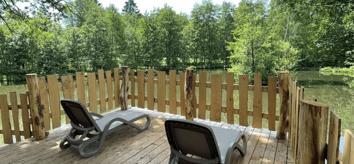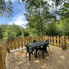Vermietung von Chalets, Mobilheimen, ungewöhnlichen Unterkünften. Angelteich, beheiztes Schwimmbad mit Planschbecken, Bach, Spielplatz, Snack/Bar und viele andere Dienstleistungen, die Sie vor Ort entdecken können.