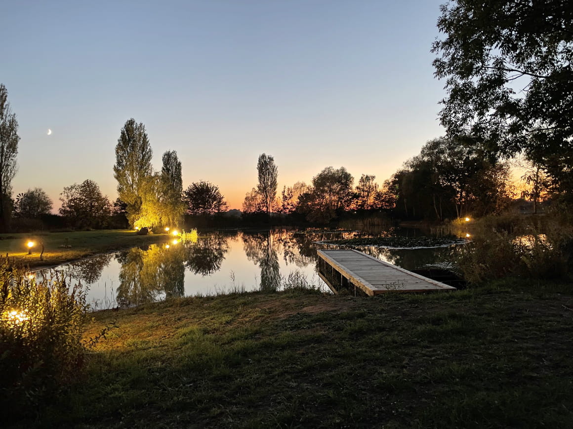 Sonnenkollektoren für den Strom, ein Holzofen für die Heizung und die Küche, ein Brunnen für das Wasser, das anschließend mit UV-Licht behandelt wird. Voll ausgestattete Küche, Badezimmer aus Corian, hochwertige Bettwäsche... Aber vor allem einen direkten Blick auf einen Teich, in dem Fauna & Flora voll zum Ausdruck kommen. Wir bauen Gemüse, Obst und Kräuter an, um die Küche unseres Restaurants À la 12 zu versorgen.