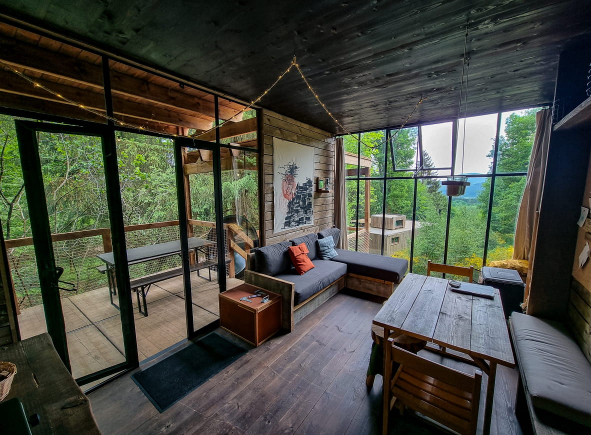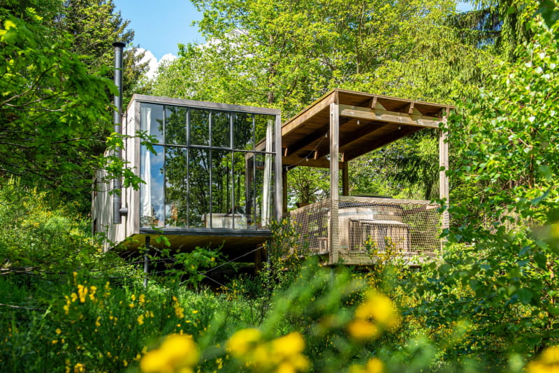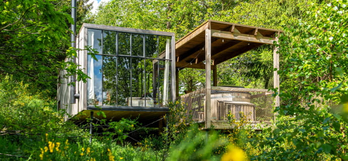 In einem 7 Hektar großen Naturgebiet mit atemberaubender Aussicht auf das Bruche-Tal und die Vogesen heißt Sie Nutchel das ganze Jahr über in einer der 37 Hütten willkommen, aus denen das Walddorf im Elsass besteht. Es wird alles getan, um Ihnen eine Erfahrung zu bieten, die Sie zu einem authentischeren Leben zurückführt und Ihnen die Möglichkeit gibt, wieder mit sich selbst, Ihren Lieben und der Natur in Kontakt zu treten. Die intime und gemütliche Atmosphäre jeder Hütte wird durch die Beleuchtung mit Kerzen und Öllampen, die bequemen Betten und Sitzgelegenheiten und die Heizung mit einem Holzofen geschaffen. Neben der Entspannung, die die Ruhe oder die nordischen Bäder in einigen Hütten bieten, sind unsere Gäste eingeladen, sich auf Mikroabenteuer zu begeben, dank der zahlreichen Wander- und Fahrradtouren in der Region, der vielen Spiele im Freien und der Vorschläge für kreative Aktivitäten des Anwesens. Sie sind herzlich willkommen!