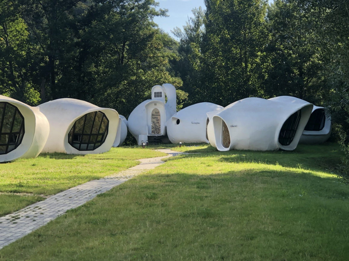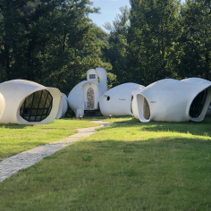Ob Sie allein, zu zweit oder mit der Familie reisen, diese ungewöhnlichen Unterkünfte werden Ihren Erwartungen entsprechen. Die einfachen Blasenhäuser können bis zu 2 Personen beherbergen, während die Familienhäuser mit 4 Schlafplätzen ausgestattet sind. Diese eiförmigen Behausungen, die repräsentativ für die utopische Architektur der 1960er Jahre sind, wurden von den visionären Architekten Pascal Haüsermann und Claude Costy entworfen. Diese Bauwerke, die heute unter Denkmalschutz stehen, sind ein perfektes Beispiel für ihre avantgardistische Vision.