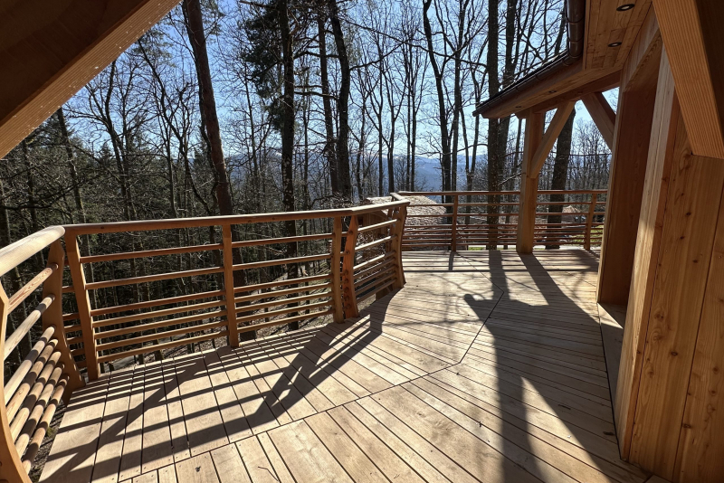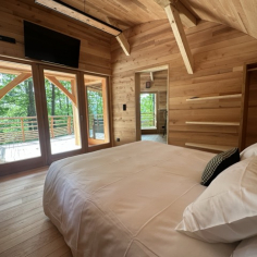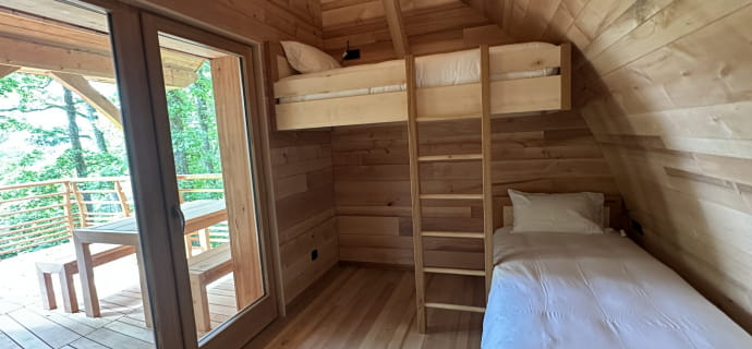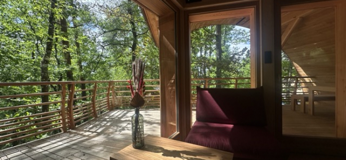 Entscheiden Sie sich für ein einzigartiges Erlebnis mit der ganzen Familie, ganz nah an der Natur, in einer der Baumhäuser der Domaine de Haslach. Diese ungewöhnlichen, 40 m² großen Unterkünfte am Waldrand sind wahre Oasen der Ruhe und des Komforts, in denen man sich zusammenfinden und neue Energie tanken kann.