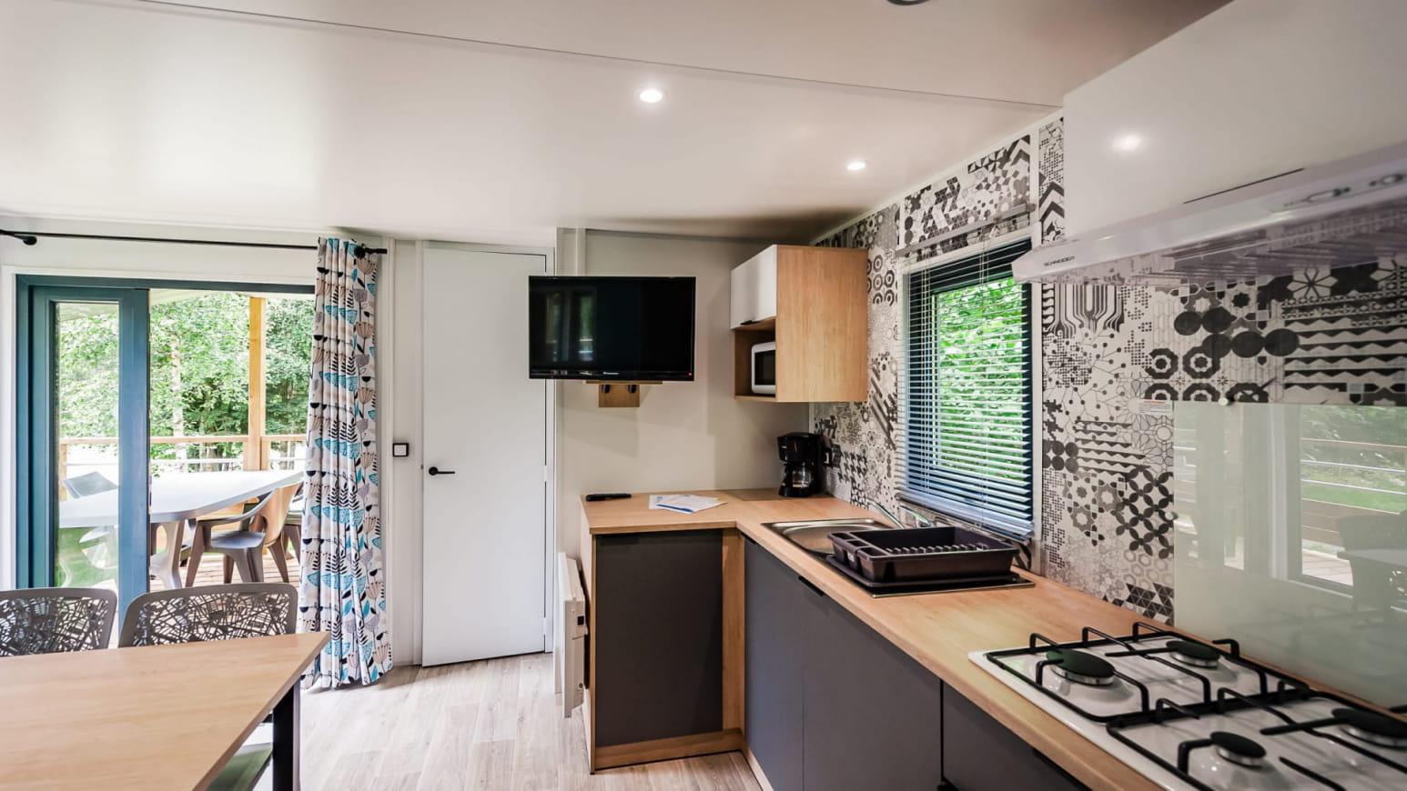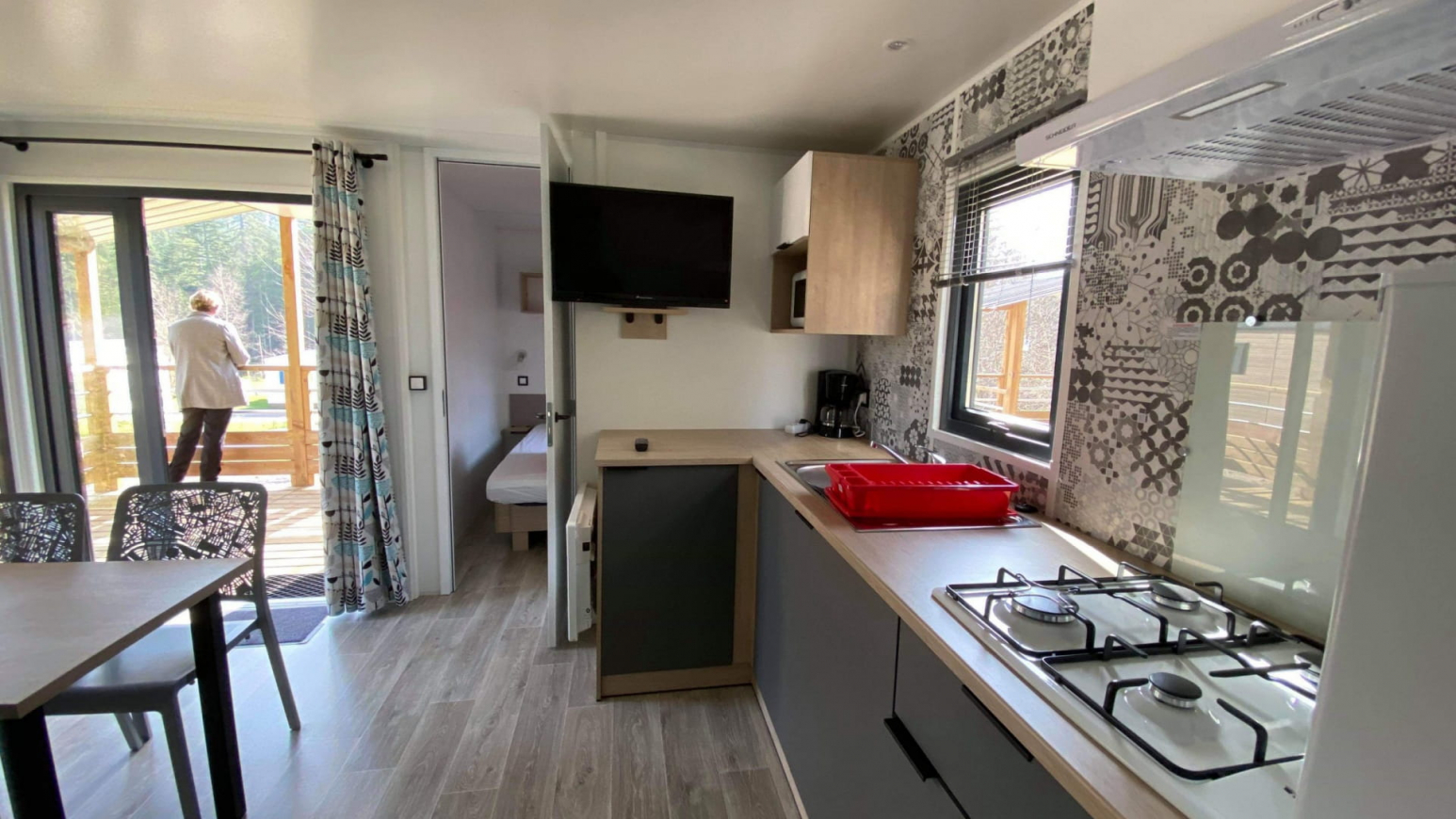 In den Bergen und mitten im Wald gelegen, ist das Mobilheim ein wahres Paradies für Kinder, in dem sie sich für die Dauer eines Aufenthalts in der Natur vom Stadtleben loslösen können. Als frisch gebaute Unterkunft können Sie dieses Rapid Home, das sich über eine Fläche von 25 m² erstreckt, als Erster entdecken.