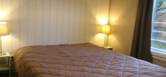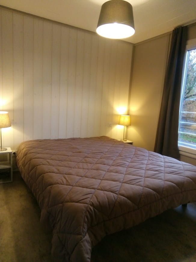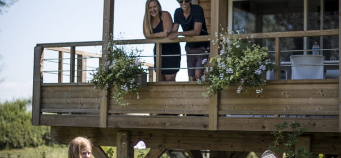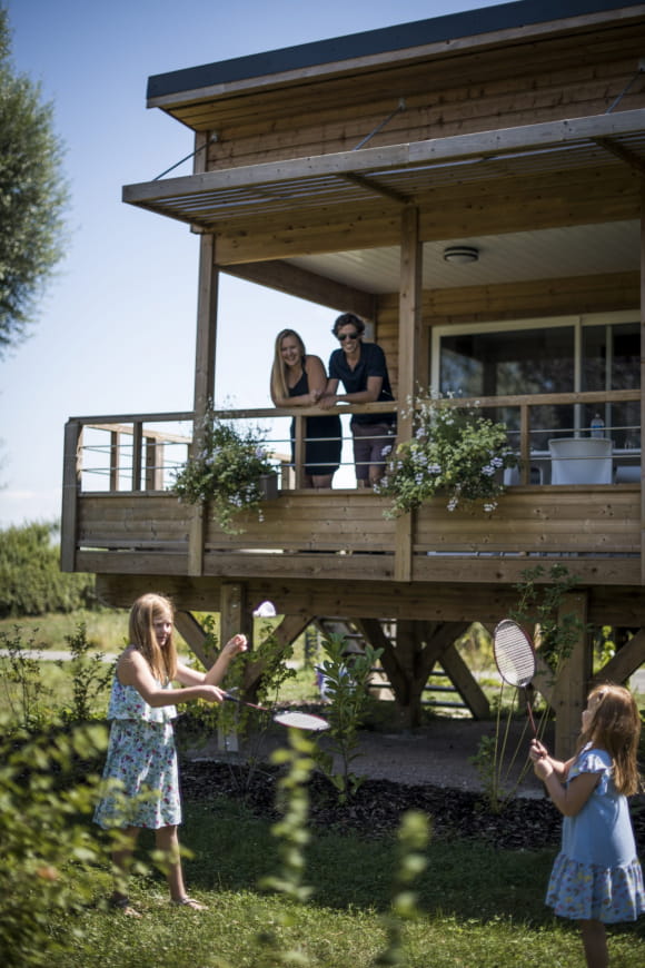 Für diese Formel haben Sie die Wahl zwischen seinen 2 Chalets, die rund um den Wasserspiegel platziert sind. Die auf Stelzen gebauten Chalets sind gemütlich und garantieren Ihnen Komfort. Diese Chalets sind aus Holz gebaut und verfügen über große Glasschiebetüren im Wohnzimmer, die sich auf die große überdachte, ausgestattete und möblierte Terrasse öffnen, die während Ihres Aufenthalts zugänglich ist. Ihre Schlafzimmer verfügen jeweils über ein Doppelbett von 160 x 200 cm. Diese Unterkünfte verfügen außerdem über einen Wohnraum mit einem ausziehbaren Schlafsofa und eine ausgestattete Küche. Nicht zu vergessen sind das Badezimmer und die separate Toilette.