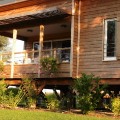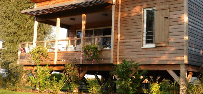 Der Campingplatz ist mit den Labels Qualité Tourisme und Accueil Vélo ausgezeichnet und garantiert somit einen qualitativ hochwertigen Empfang und Service. Der Freizeitbereich liegt in einer 4 ha großen, geschützten Naturlandschaft und bietet eine Umgebung, in der Sie sich entspannen und neue Energie tanken können. Das auf Stelzen errichtete und aus Holz gefertigte Chalet bietet eine warme und authentische Atmosphäre. Seine überdachte Terrasse, die direkt von der großen Glastür des Wohnzimmers aus zugänglich ist, ermöglicht es, den Aufenthalt im Freien ganz einfach zu genießen.