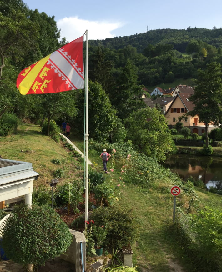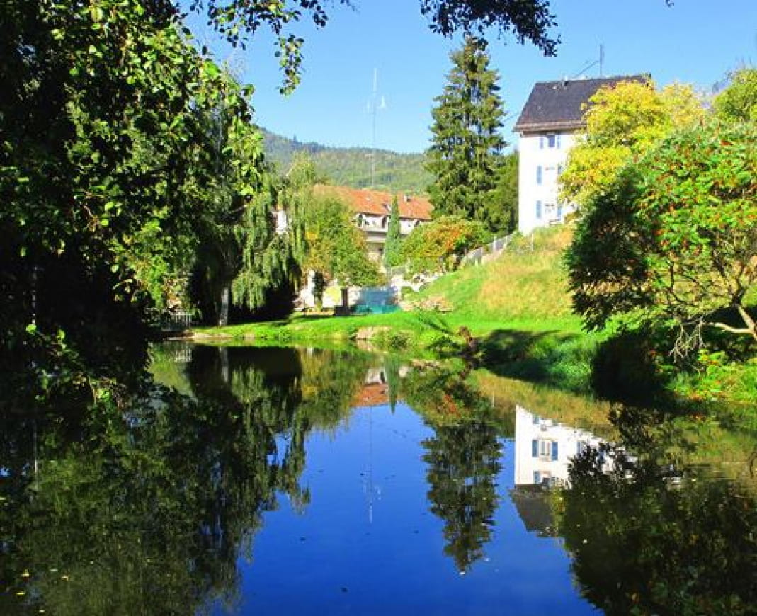 Die Familienwohnung « Détente au Balcon » verfügt über einen eigenenBalkon mit Liegestuhl, Tisch und Stühlen, perfekt, um den Panoramablick auf das Münstertal und den privaten Teich des Anwesens zu genießen. Der Aufenthalt umfasst 2 Übernachtungen in der Wohnung für 4 Personen im zweiten Stock.