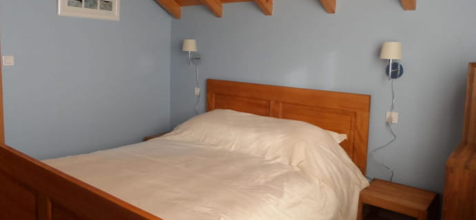Sie befindet sich im Obergeschoss eines Nebengebäudes und verfügt über eine zum Wohnzimmer hin offene Einbauküche, Flachbildfernseher, Sofa. 1 Zimmer mit einem Doppelbett (160×190) und einer Schlafecke mit einem Bett (90×190). Im Zwischengeschoss können auf Anfrage weitere Schlafplätze (2 Betten 80×190) eingerichtet werden. Ein Badezimmer mit Dusche, WC, Waschmaschine und Trockner. Bettwäsche wird zur Verfügung gestellt. Internet (wifi). Eine Terrasse, Grünfläche, Privatparkplatz im Hof.