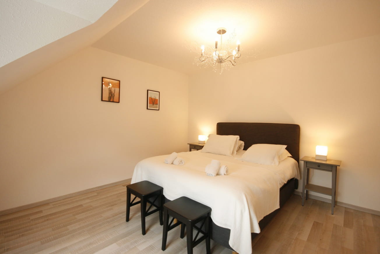 Im Schlafzimmer erwartet Sie ein gemütliches und raffiniertes Ambiente für Momente der absoluten Entspannung. Sie werden ein ultrabequemes Doppelbett mit optimierten Schränken vorfinden, ohne den herrlichen Blick auf die Weinberge zu vergessen. Viele weitere Annehmlichkeiten ergänzen diese schöne Kombination, um nur das Badezimmer mit begehbarer Dusche, den elektrischen Handtuchtrockner oder den Waschtrockner zu nennen. Bei Ihrer Ankunft werden Ihnen außerdem hochwertige Badetücher und Handtücher zur Verfügung gestellt, um Ihnen noch mehr Komfort zu bieten.