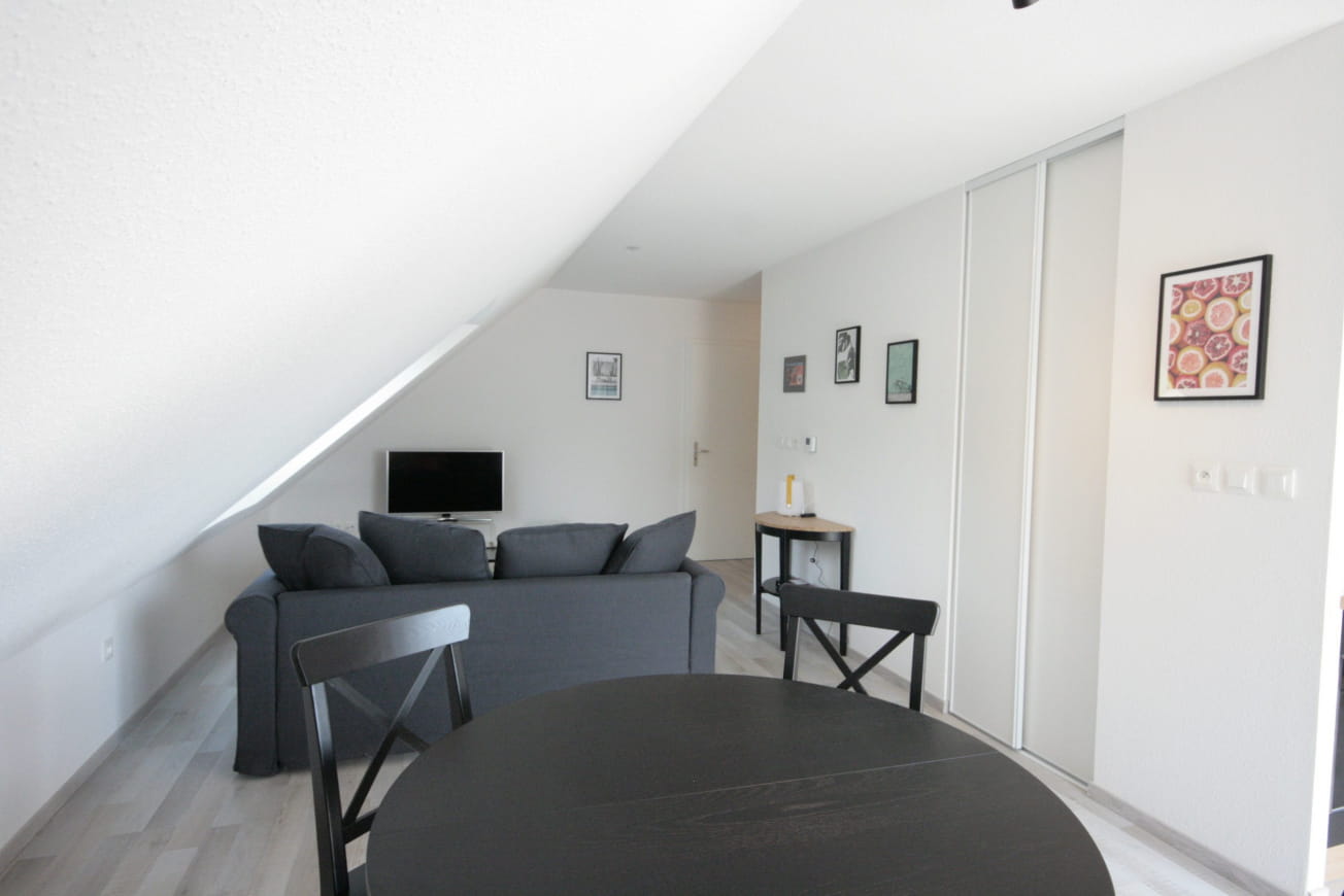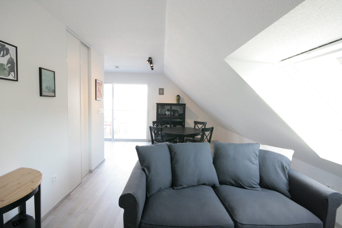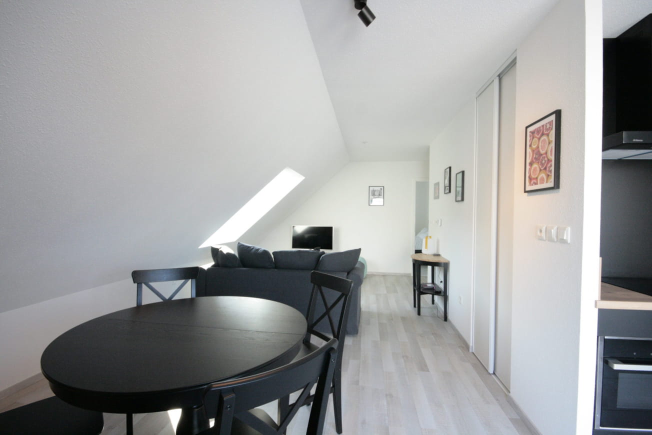 Wenn Sie die Türen des Clos des Clarisses aufstoßen, werden Sie in einem modernen und eleganten Wohn- und Esszimmer empfangen, das von der sanften Atmosphäre des Elsass eingelullt wird. Ein schlichtes und helles Dekor gibt hier den Ton an und wird durch moderne Designermöbel ergänzt. Ein 2-Sitzer-Sofa mit Schlaffunktion ermöglicht es Ihnen, gemütliche Filmabende zu genießen! Um mit Ihren Lieben in Verbindung zu bleiben, können Sie auch den kostenlosen WLAN-Breitbandanschluss nutzen.