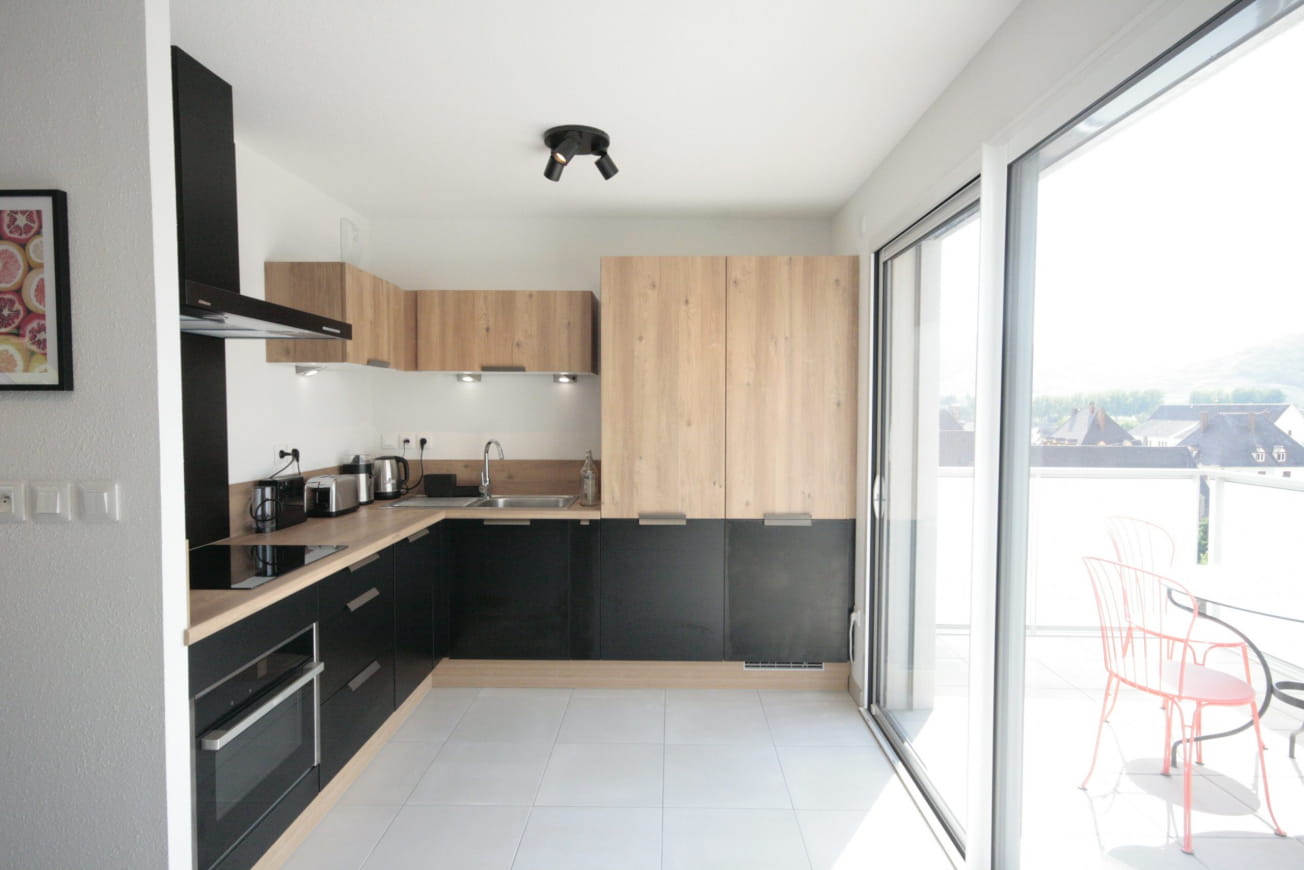Mikrowellenherd, Kochplatten, Kühlschrank, Wasserkocher, Geschirrspüler… Wenn Sie gerne kochen, werden Sie sich freuen, dass Sie alle Geräte in der Küche der Wohnung vorfinden. Dank der Nähe zu den Geschäften werden die frischen lokalen Produkte Ihre Zubereitungen hervorheben, die Sie bequem in Ihren eigenen vier Wänden oder an schönen Tagen auf der Panoramaterrasse genießen können.