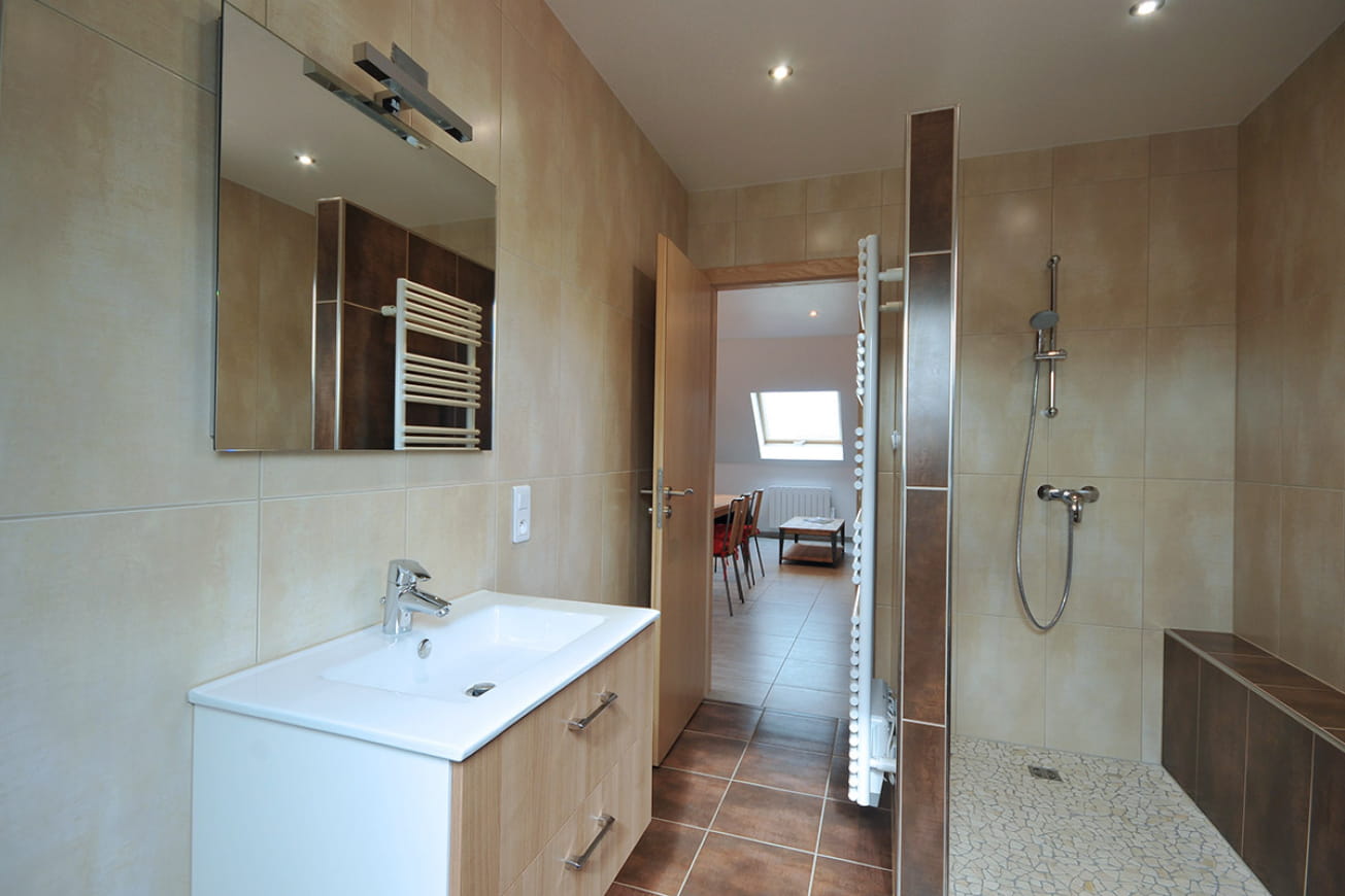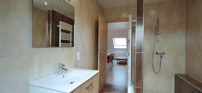 Separater Eingang, Eingangsschleuse, im 1. Stock, 1 Schlafzimmer mit Bett 140X190, Ankleidezimmer, kleines Wohnzimmer mit Klick-Klack, das in ein Doppelzimmer umgewandelt werden kann (Bett 140×190), voll ausgestattete Küche, die zum Wohnzimmer hin offen ist, Wohnzimmer mit Flachbildfernseher, Sofa. Badezimmer mit italienischer Dusche.