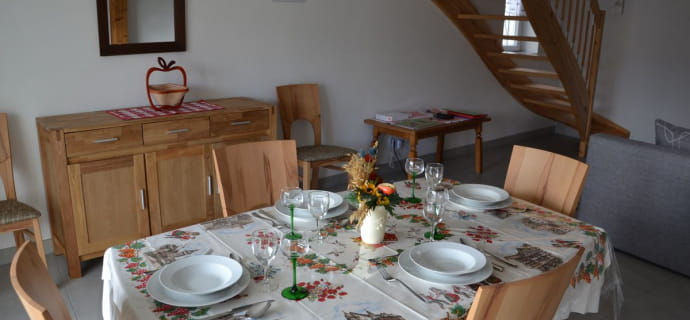 Das Ferienhaus ‘LA GRANGE’: komfortabel und hell, grenzt an das Haus des Eigentümers und befindet sich im Zentrum des Dorfes. Im Erdgeschoss: 1 unabhängige Garage für 1 Auto und ein Waschraum mit Waschmaschine und Wäscheständer zur Verfügung. Der Eingang der Unterkunft befindet sich im 1. Stock und bietet einen direkten Zugang zu einer privaten überdachten Terrasse mit Gartenmöbeln.