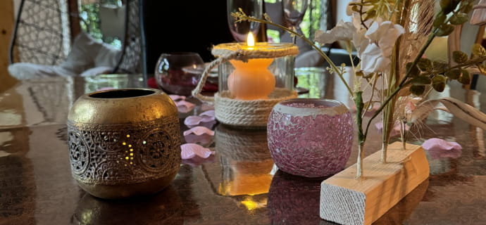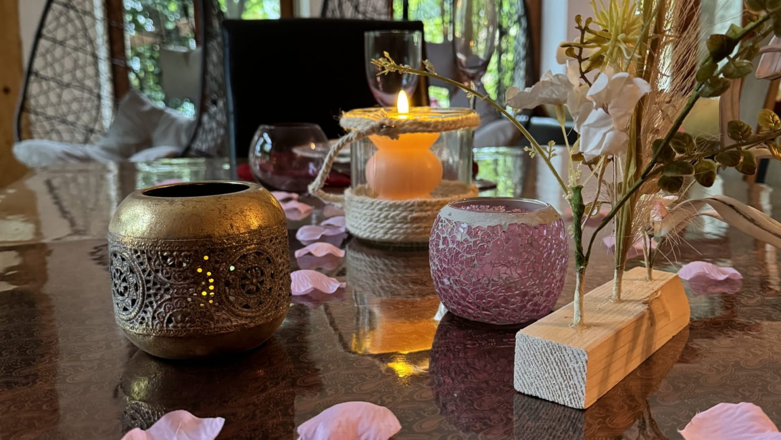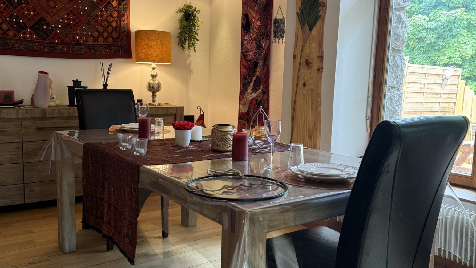 - Romantische Ankunft: gedeckter Tisch, Blumen und Schokolade extra