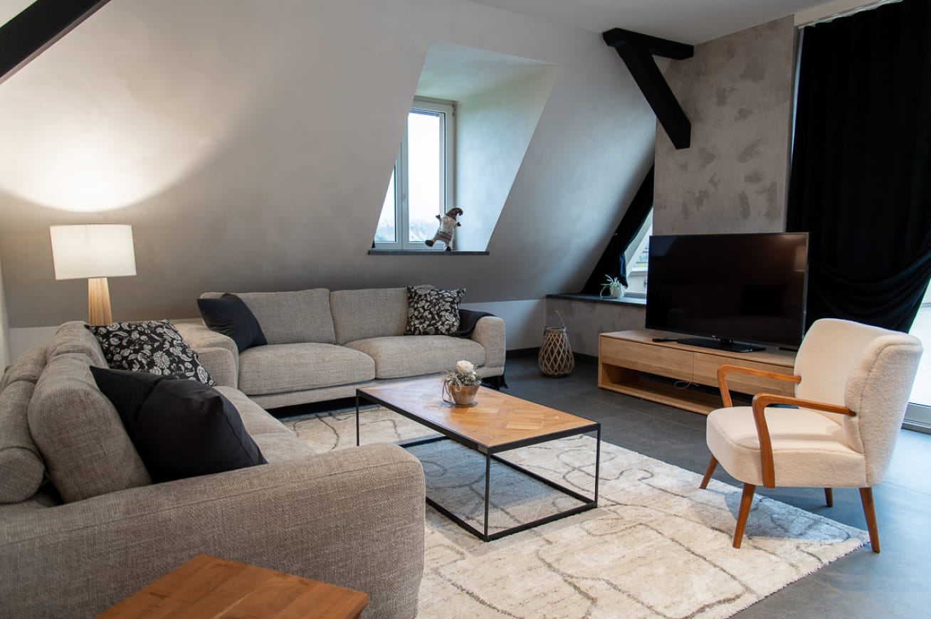 Willkommen in der Gîte Thérèse, der geräumigsten von allen! Diese Familienunterkunft befindet sich im 1. Stock gegenüber der Unterkunft Madeleine und verfügt über eine eigene Terrasse mit Whirlpool, von der aus Sie einen herrlichen Blick auf die umliegende Natur haben. Sie finden hier 2 Schlafzimmer mit Kingsize-Betten sowie ein angrenzendes separates Zimmer mit 2 Einzelbetten und einem Schlafsofa, wodurch ein idealer Raum für Familien oder Gruppen von Freunden geschaffen wird. Die Betten sind bei Ihrer Ankunft bezogen und die Bettwäsche wird Ihnen zur Verfügung gestellt. Wie in jedem Ferienhaus von Le Moulin 1846 finden Sie auch hier eine voll ausgestattete Küche und ein Badezimmer mit begehbarer Dusche, ideal zum Entspannen nach einem Tag voller Erkundungen.