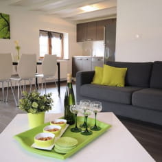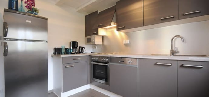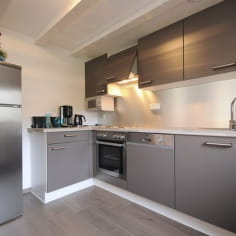 Da dieses Ferienhaus bis zu 4 Personen mit Kindern beherbergen kann, ist es eine schöne Unterkunft für einen Familienurlaub. Es verfügt unter anderem über Schlafzimmer, die jeweils mit einem Doppelbett ausgestattet sind. Auf Wunsch kann eine Babyausstattung mit Kinderbett und Hochstuhl angefordert werden. Das Badezimmer umfasst eine begehbare Dusche mit großem Waschbecken. Das Ferienhaus verfügt außerdem über eine voll ausgestattete Küche, die sich zum Wohnzimmer hin öffnet. Das Wohnzimmer verfügt über einen Essbereich mit einem modernen Esstisch und nordischen Stühlen sowie ein Wohnzimmer mit einem bequemen Sofa und einem schönen Couchtisch.