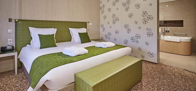 Erleben Sie eine Erfahrung, die Komfort und Raffinesse im Hotel Golden Tulip Amnéville vereint. Dieses 4-Sterne-Haus bietet Ihnen eine entspannende Auszeit für Ihren Freizeit- oder Geschäftsaufenthalt. Profitieren Sie auch von unserem SPA-Service! Unser Team freut sich darauf, Sie zu empfangen und Sie in diesem Moment des Wohlbefindens zu begleiten (Leistungen auf Reservierung als Zusatz zum Unterkunftstarif).