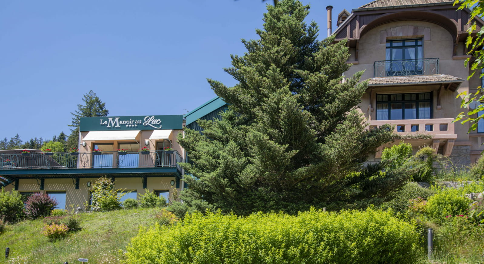 Le Manoir au Lac ist ein 4-Sterne-Sammelhotel aus dem 19. Jahrhundert mit 17 Zimmern und Suiten mit Blick auf den See und unseren 1,5 Hektar großen Blumenpark. Wir bieten auch Restaurants in einem Saal mit Panoramablick auf den See und im Sommer auf der Terrasse. Wir verfügen über einen Wellnessbereich mit Schwimmbad, Hammam und Sauna.