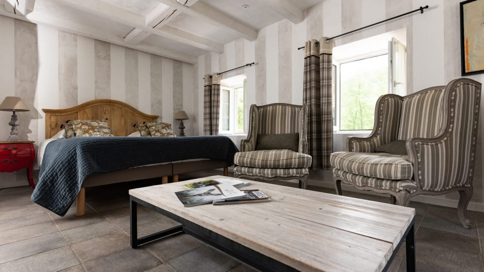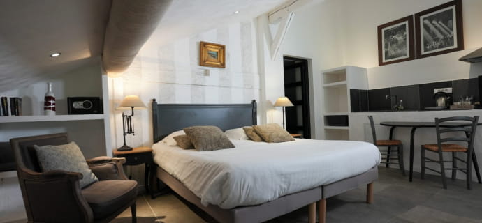 Wenn Sie in der Auberge de la Poulcière übernachten, profitieren Sie von einer Unterkunft mit Terrasse oder Balkon – die Prestige-Suiten verfügen über eine eigene Terrasse. Eine geräumige Unterkunft (mit Wohnflächen zwischen 22 und 65 m²), die mit allem Komfort ausgestattet und geschmackvoll eingerichtet ist. Jedes der Zimmer verfügt über ein wunderschönes Badezimmer mit Badewanne undbegehbarer Dusche.