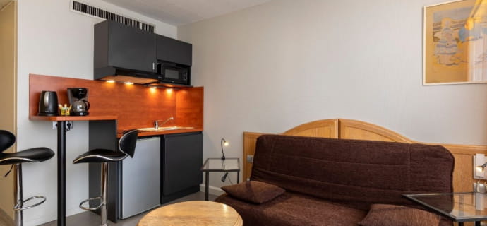 Vom 22 m² großen Studio T1 bis zum 45 m² großen Appartement T2 bietet Ihnen das Aparthotel Coeur de Ville 105 Unterkünfte, die allen Ansprüchen gerecht werden. Treffen Sie Ihre Auswahl nach Ihren Erwartungen und richten Sie sich in aller Ruhe ein! Jede Wohnung ist sorgfältig möbliert und vollständig ausgestattet, sodass Sie einen angenehmen und komfortablen Aufenthalt im Herzen von Nancy genießen können.