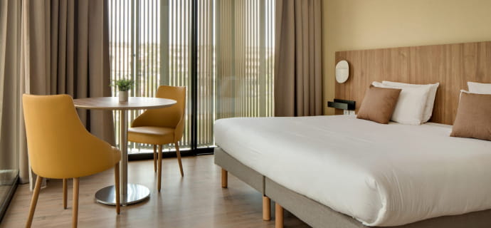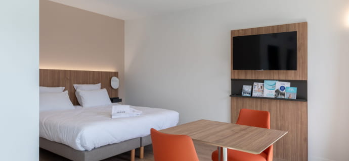 Mit ihren 76 perfekt ausgestatteten Studios und Suiten eignet sich die Villa Thermae für alle Arten von Aufenthalten: Thermalkuren, Wellness-Pausen, Geschäftsreisen oder Entspannungswochenenden. Jede Unterkunft bietet eine Küchenzeile, eine Sitzecke und hochwertige Bettwäsche, um Ihre Unabhängigkeit und Ihren Komfort zu gewährleisten. Die Atmosphäre ist freundlich, mit einem zeitgenössischen Design, das von der umgebenden Natur inspiriert ist.