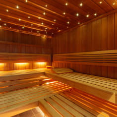 Der Spa- und Wellnessbereich des Hotels ist Tag und Nacht geöffnet und verfügt über ein beheiztes sensorisches Becken, eine finnische und tropische Sauna sowie ein Dampfbad mit Sternenhimmel, damit Sie sich während Ihres Aufenthalts erholen können. Für Ihren Komfort werden Ihnen weiche Hausschuhe, Handtücher und Bademäntel zur Verfügung gestellt.