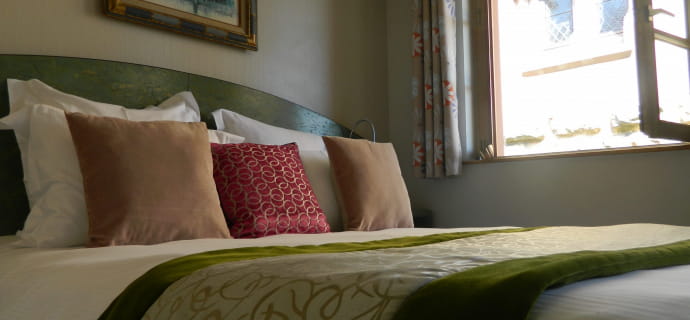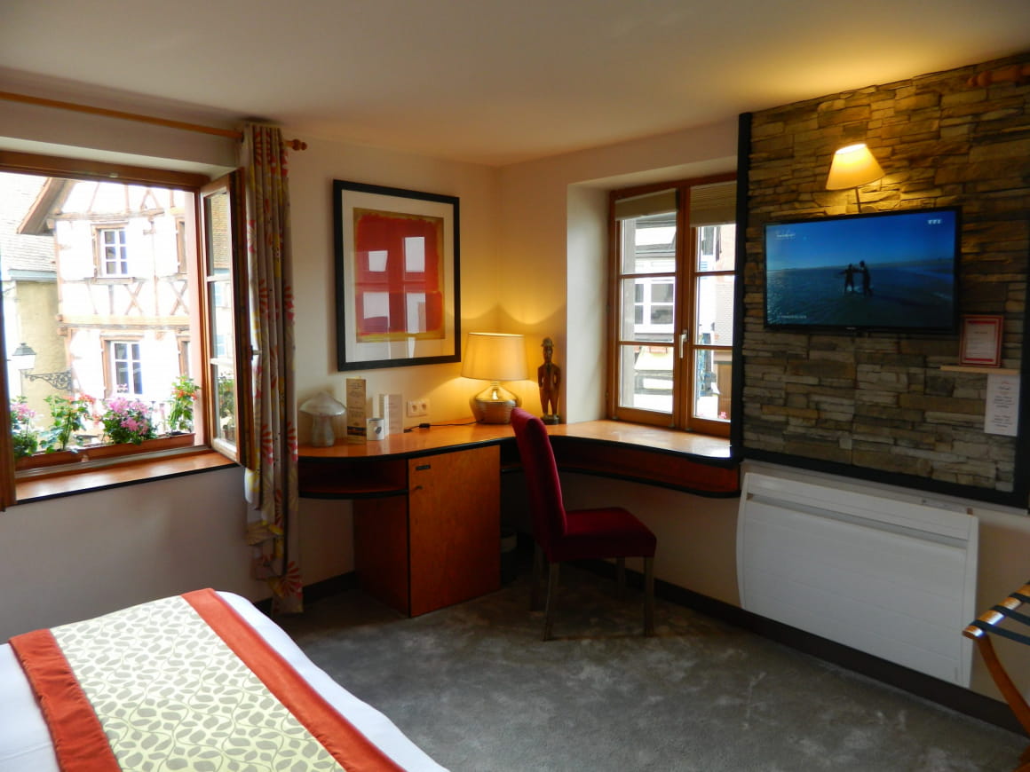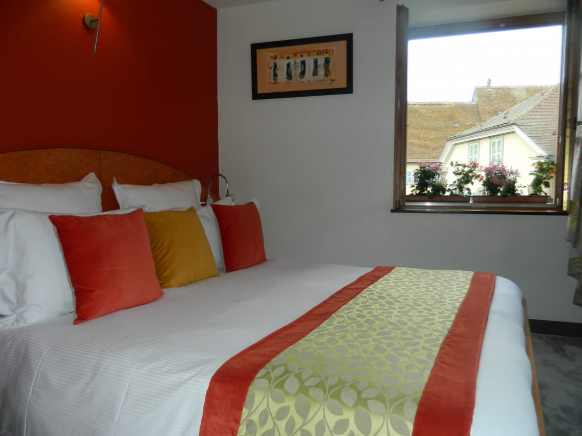 Das charmante Hotel*** befindet sich auf dem zentralen Platz von Eguisheim, neben dem Schloss, dem Geburtsort von Papst Leo IX. und dem größten Brunnen des Elsass. Die Hostellerie du Château verfügt über Standardzimmer mit Blick auf die Gassen des Dorfes. Die Superior-Zimmer direkt auf den Platz oder das Schloss sowie noch geräumigere Zimmer wie die Junior-Suite und die Komfort-Suite. Morgens wird in unserem Saal mit Blick auf den Platz ein kontinentales Frühstück mit lokalen Produkten serviert.