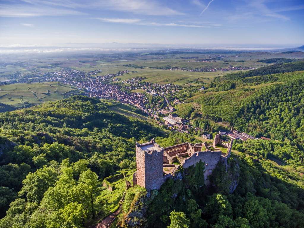 Wir setzen unsere Reise mit einem Zwischenstopp in Kintzheim fort: Das Dorf ist zwar für seinen Weinanbau und seine typisch elsässischen Häuser bekannt, aber auch die Besichtigung seiner Burg ist einen Umweg wert! Obwohl nur noch Überreste vorhanden sind, ist die Burg nicht weniger beeindruckend! Hoch oben auf 260 m Höhe und unter Denkmalschutz stehend, beherbergt die Burg Kintzheim zumindest überraschende Bewohner... In diesen Überresten hat sich der Tierpark La Volerie des Aigles niedergelassen, ein Zentrum zum Schutz von Raubvögeln: Geschicklichkeit der Adler, Akrobatik der Schwarzmilane, schwindelerregende Geschwindigkeit des Falken, lautloser Flug der Eulen... die Vögel lassen sich mit Emotionen betrachten!