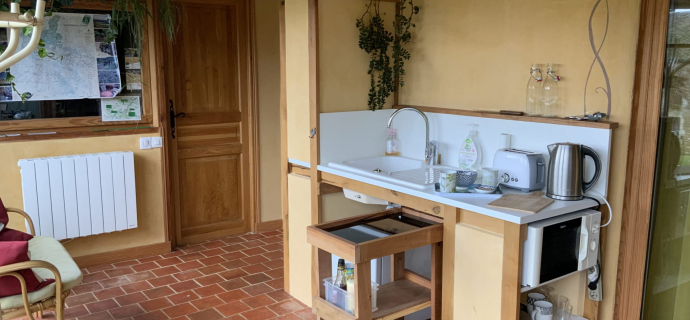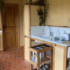With a capacity of 5 people, the “de Paille et d’Argile” bed and breakfast is ideal for couples, families or friends. You’ll find 2 bedrooms (double and family) separated by a bathroom. A kitchen, a dining area and a small living room are also available for your relaxation.